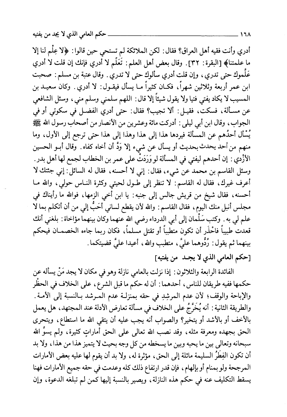 [حُكْمُ الْعَامِّيِّ الَّذِي لَا يَجِدُ مَنْ يُفْتِيهِ]