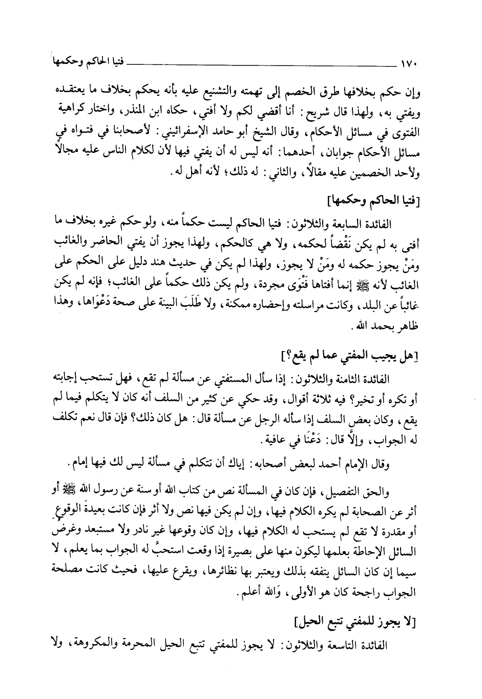 [لَا يَجُوزُ لِلْمُفْتِي تَتَبُّعُ الْحِيَلِ] الْفَائِدَةُ التَّاسِعَةُ وَالثَّلَاثُونَ: لَا يَجُوزُ لِلْمُفْتِي تَتَبُّعُ الْحِيَلِ الْمُحَرَّمَةِ وَالْمَكْرُوهَةِ، وَلَا