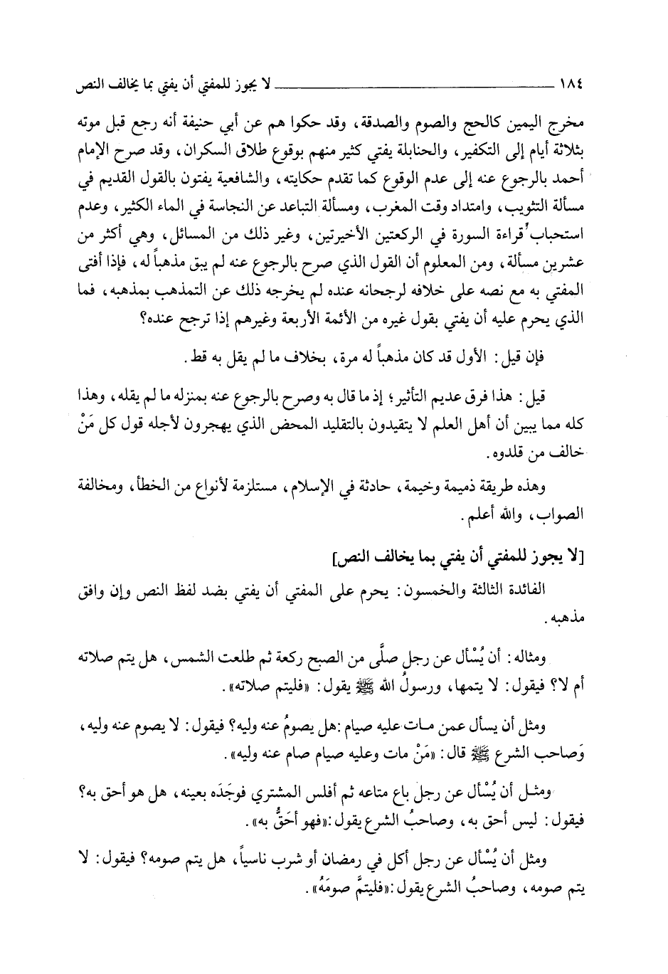 [فَتَوَى الْمُفْتِي بِمَا يُخَالِفُ النَّصَّ]