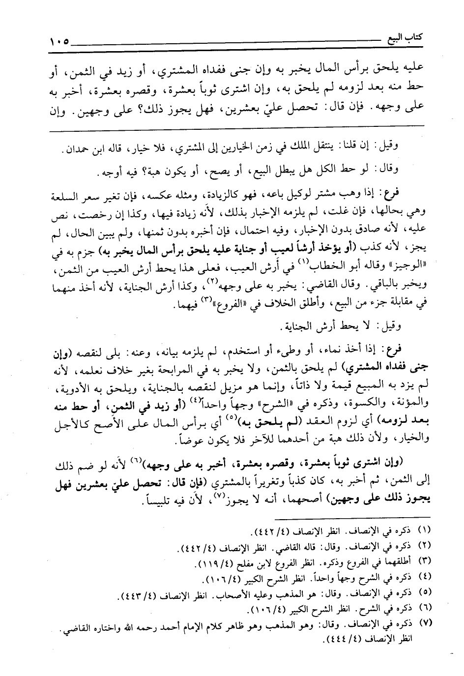 فَرْعٌ: إِذَا أَخَذَ نَمَاءً، أَوْ وَطِئَ، أَوِ اسْتَخْدَمَ لَمْ يَلْزَمْهُ بَيَانُهُ، وَعَنْهُ: بَلَى لِنَقْصِهِ (وَإِنْ جَنَى فَفَدَاهُ الْمُشْتَرِي) لَمْ يَلْحَقْ بِالثَّمَنِ، وَلَا يُخْبَرْ بِهِ فِي الْمُرَابَحَةِ بِغَيْرِ خِلَافٍ نَعْلَمُهُ؛ لِأَنَّهُ لَمْ يَزِدْ بِهِ الْمَبِيعُ قِيمَةً وَلَا ذَاتًا، وَإِنَّمَا هُوَ مُزِيلٌ لِنَقْصِهِ بِالْجِنَايَةِ وَيَلْحَقُ بِهِ الْأَدْوِيَةُ وَالْمُؤْنَةُ وَالْكِسْوَةُ، وَذَكَرَهُ فِي " الشَّرْحِ " وَجْهًا وَاحِدًا (أَوْ زِيدَ فِي الثَّمَنِ، أَوْ حَطَّ مِنْهُ بَعْدَ لُزُومِهِ) أَيْ: لُزُومِ الْعَقْدِ (لَمْ يَلْحَقْ بِهِ) أَيْ: بِرَأْسِ الْمَالِ عَلَى الْأَصَحِّ كَالْأَجَلِ وَالْخِيَارِ، وَلِأَنَّ ذَلِكَ هِبَةٌ مِنْ أَحَدِهِمَا لِلْآخَرِ، فَلَا يَكُونُ عِوَضًا.