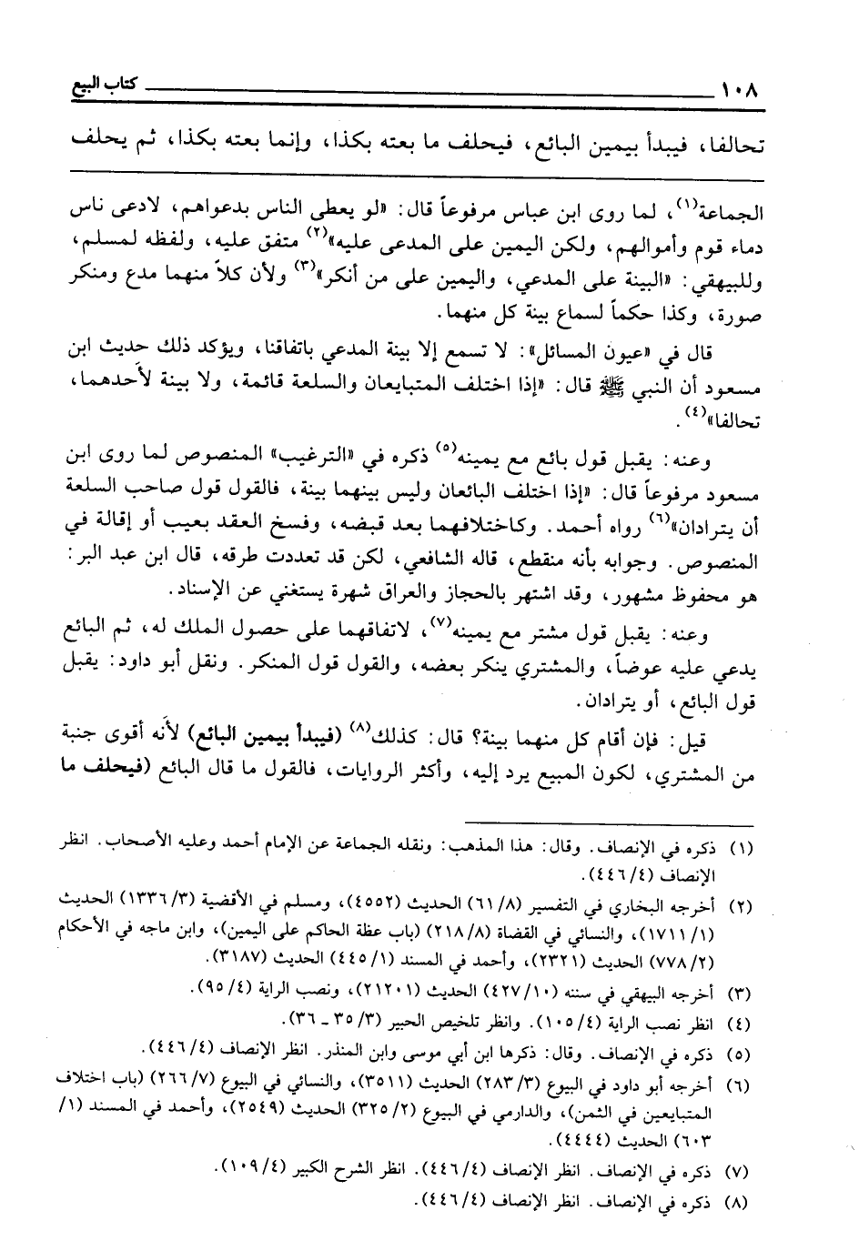 ـــــــــــــــــــــــــــــQالْجَمَاعَةُ لِمَا رَوَى ابْنُ عَبَّاسٍ مَرْفُوعًا قَالَ: «لَوْ يُعْطَى النَّاسُ بِدَعْوَاهُمْ لَادَّعَى نَاسٌ دِمَاءَ قَوْمٍ وَأَمْوَالَهُمْ، وَلَكِنَّ الْيَمِينَ عَلَى الْمُدَّعَى عَلَيْهِ» مُتَّفَقٌ عَلَيْهِ وَلَفْظُهُ لِمُسْلِمٍ، وَلِلْبَيْهَقِيِّ «الْبَيِّنَةُ عَلَى الْمُدَّعِي، وَالْيَمِينُ عَلَى مَنْ أَنْكَرَ» وَلِأَنَّ كُلًّا مِنْهُمَا مُدَّعٍ وَمُنْكِرٌ صُورَةً، وَكَذَا حُكْمًا لِسَمَاعِ بَيِّنَةِ كُلٍّ مِنْهُمَا.