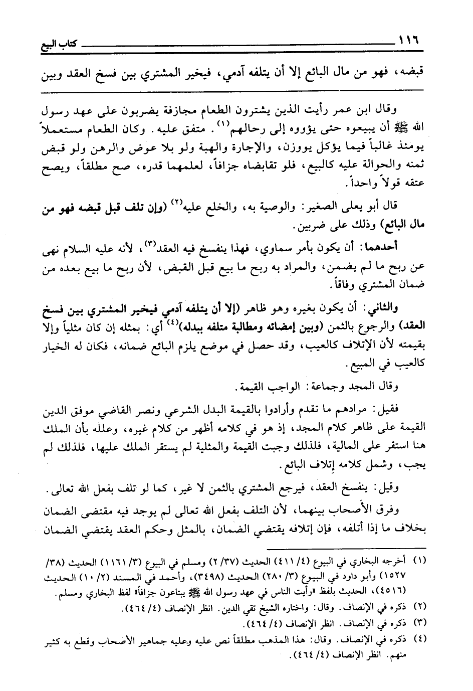 أَحَدُهُمَا: أَنْ يَكُونَ بِأَمْرٍ سَمَاوِيٍّ، فَهَذَا يَنْفَسِخُ فِيهِ الْعَقْدُ؛ لِأَنَّهُ - عَلَيْهِ السَّلَامُ - «نَهَى عَنْ رِبْحِ مَا لَمْ يُضْمَنْ» ، وَالْمُرَادُ بِهِ رِبْحُ مَا بِيعَ قَبْلَ الْقَبْضِ؛ لِأَنَّ رِبْحَ مَا بِيعَ بَعْدَهُ مِنْ ضَمَانِ الْمُشْتَرِي وِفَاقًا.