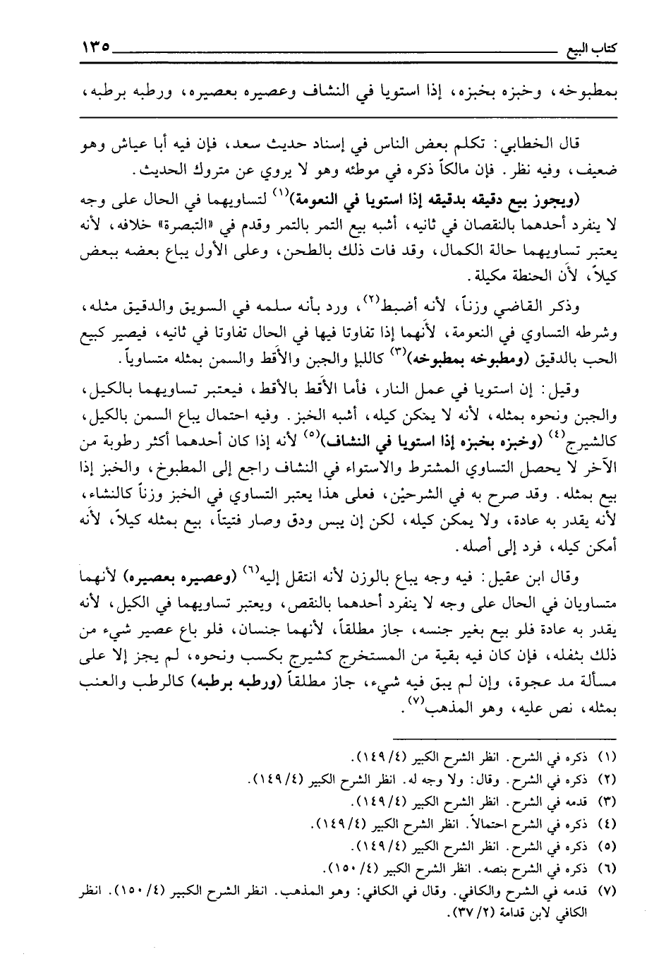 بِمَطْبُوخِهِ وَخُبْزِهِ بِخُبْزِهِ إِذَا اسْتَوَيَا فِي النُّشَافِ وَعَصِيرِهِ بِعَصِيرِهِ وَرَطْبِهِ بِرَطْبِهِ.