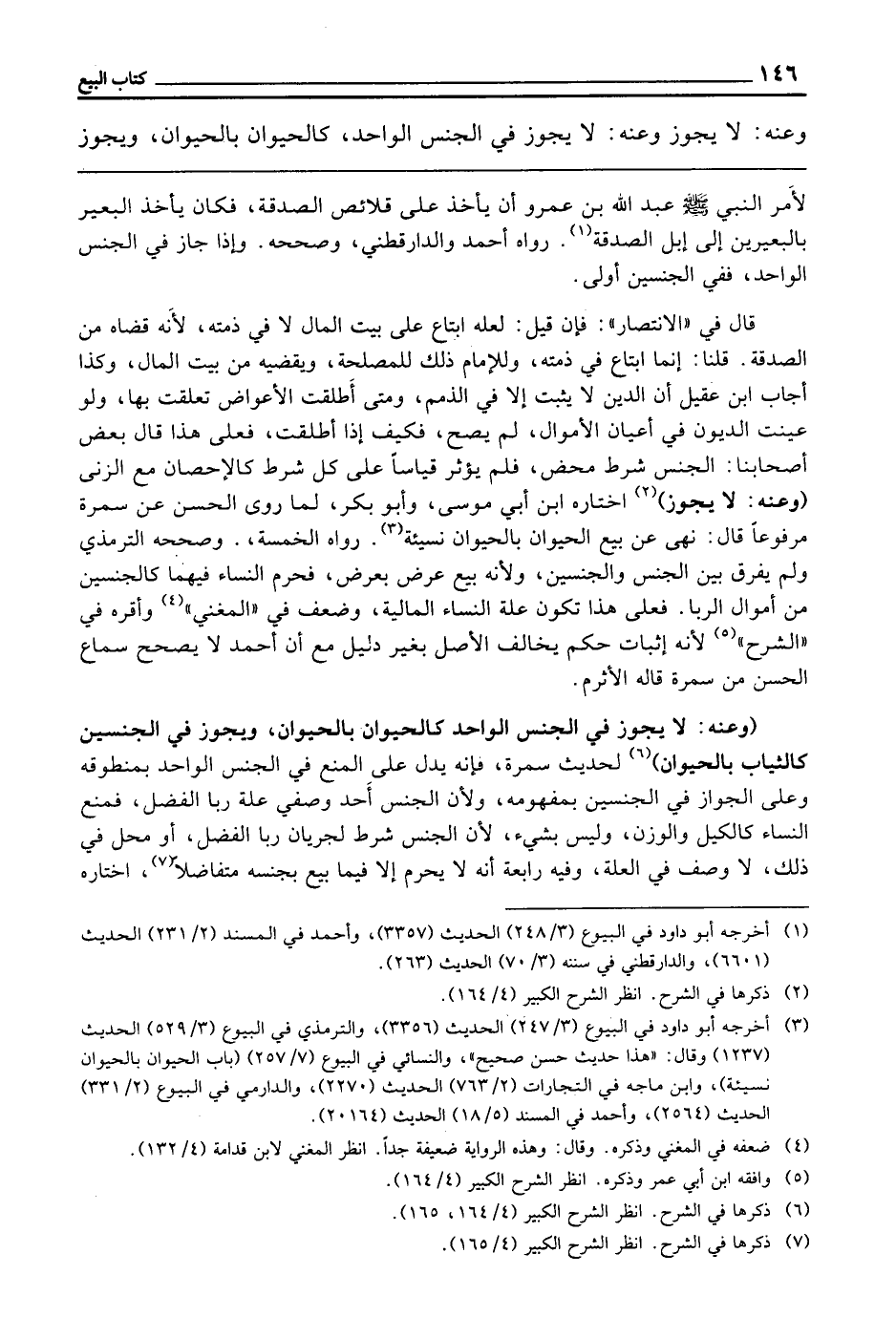 قَالَ فِي " الِانْتِصَارِ ": فَإِنْ قِيلَ: لَعَلَّهُ ابْتَاعَ عَلَى بَيْتِ الْمَالِ لَا فِي ذِمَّتِهِ؛ لِأَنَّهُ قَضَاهُ مِنَ الصَّدَقَةِ، قُلْنَا: إِنَّمَا ابْتَاعَ فِي ذِمَّتِهِ وَلِلْإِمَامِ ذَلِكَ لِلْمَصْلَحَةِ وَيَقْضِيهِ مِنْ بَيْتِ الْمَالِ، وَكَذَا أَجَابَ ابْنُ عَقِيلٍ أَنَّ الدَّيْنَ لَا يَثْبُتُ إِلَّا فِي الذِّمَمِ وَمَتَى أُطْلِقَتِ الْأَعْوَاضُ تَعَلَّقَتْ بِهَا، وَلَوْ عُيِّنَتِ الدُّيُونُ فِي أَعْيَانِ الْأَمْوَالِ لَمْ يَصِحَّ فَكَيْفَ إِذَا أُطْلِقَتْ، فَعَلَى هَذَا قَالَ بَعْضُ أَصْحَابِنَا: الْجِنْسُ شَرْطٌ مَحْضٌ، فَلَمْ يُؤَثِّرْ قِيَاسًا عَلَى كُلِّ شَرْطٍ كَالْإِحْصَانِ مَعَ الزِّنَى (وَعَنْهُ: لَا يَجُوزُ) ، اخْتَارَهُ ابْنُ أَبِي مُوسَى، وَأَبُو بَكْرٍ لِمَا رَوَى الْحَسَنُ عَنْ سَمُرَةَ مَرْفُوعًا قَالَ: «نَهَى عَنْ بَيْعِ الْحَيَوَانِ بِالْحَيَوَانِ نَسِيئَةً» . رَوَاهُ الْخَمْسَةُ، وَصَحَّحَهُ التِّرْمِذِيُّ، وَلَمْ يُفَرِّقْ بَيْنَ الْجِنْسِ وَالْجِنْسَيْنِ، وَلِأَنَّهُ بَيْعُ عَرْضٍ بِعَرْضٍ فَحُرِّمَ النَّسَاءُ فِيهِمَا كَالْجِنْسَيْنِ مِنْ أَمْوَالِ الرِّبَا، فَعَلَى هَذَا تَكُونُ عِلَّةُ النَّسَاءِ الْمَالِيَّةَ، وَضُعِّفَ فِي " الْمُغْنِي " وَأَقَرَّهُ فِي " الشَّرْحِ "؛ لِأَنَّهُ إِثْبَاتُ حُكْمٍ يُخَالِفُ الْأَصْلَ بِغَيْرِ دَلِيلٍ مَعَ أَنَّ أَحْمَدَ لَا يُصَحِّحُ سَمَاعَ الْحَسَنِ مِنْ سَمُرَةَ. قَالَهُ الْأَثْرَمُ.