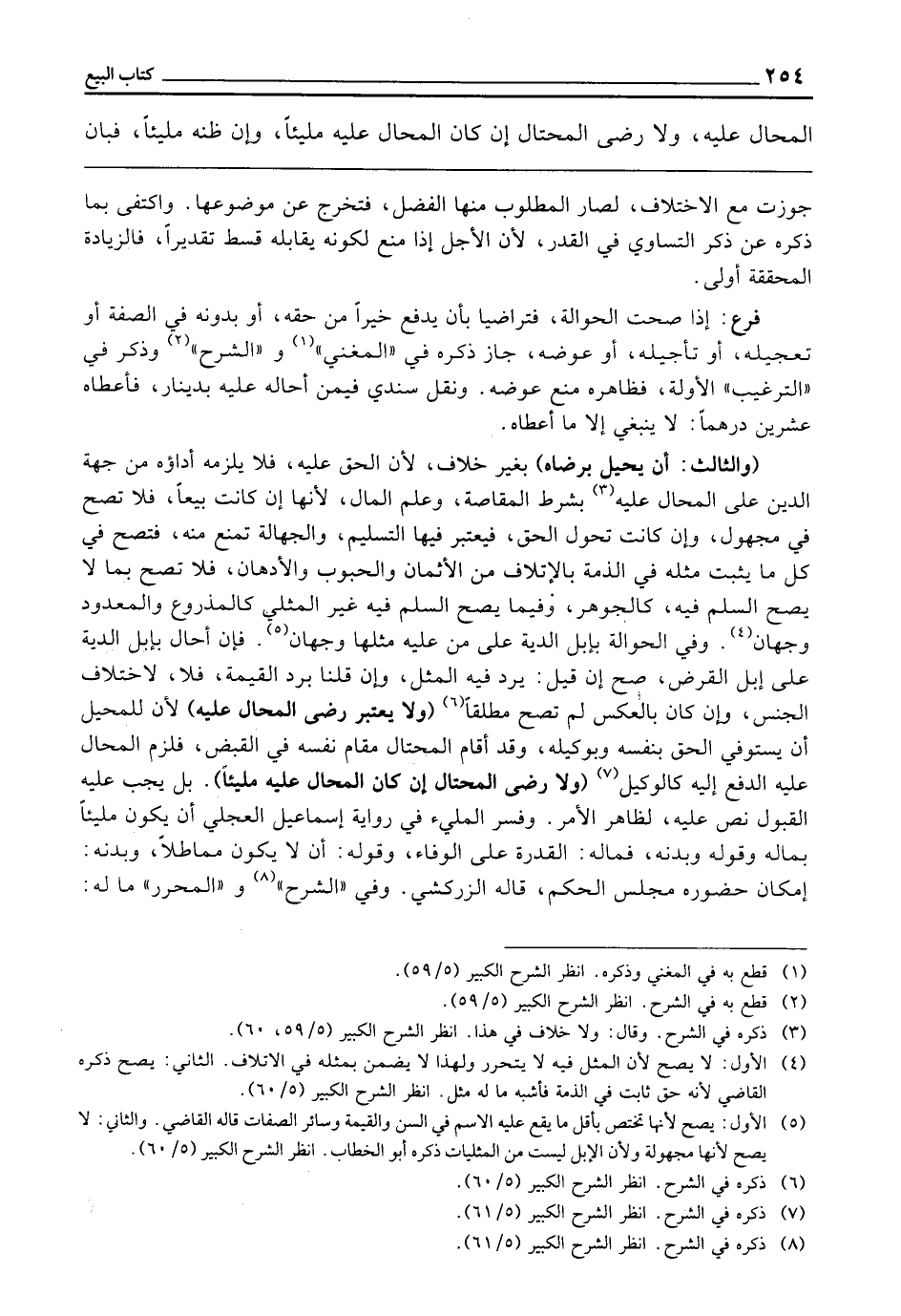 الْمُحَالِ عَلَيْهِ، وَلَا رِضَا الْمُحْتَالِ إِنْ كَانَ الْمُحَالُ عَلَيْهِ مَلِيئًا وَإِنْ ظَنَّهُ مليئا فبان