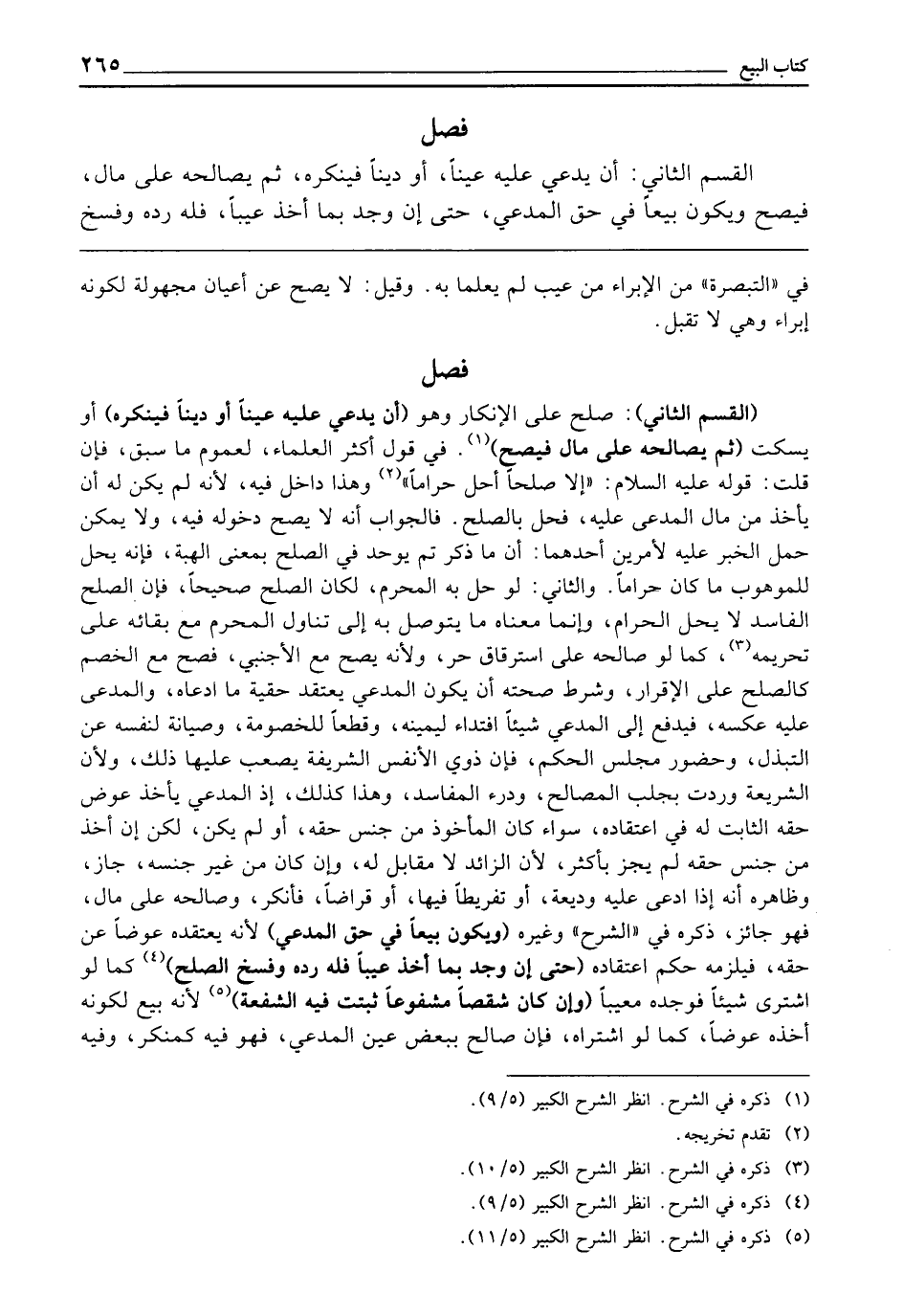 فَصْلٌ الْقِسْمُ الثَّانِي: أَنْ يَدَّعِيَ عَلَيْهِ عَيْنًا، أَوْ دَيْنًا فَيُنْكِرَهُ، ثُمَّ يُصَالِحَهُ عَلَى مَالٍ، فَيَصِحُّ وَيَكُونُ بَيْعًا فِي حَقِّ الْمُدَّعِي حَتَّى إِنْ وَجَدَ بِمَا أَخَذَ عَيْبًا فَلَهُ رَدُّهُ وَفَسْخُ