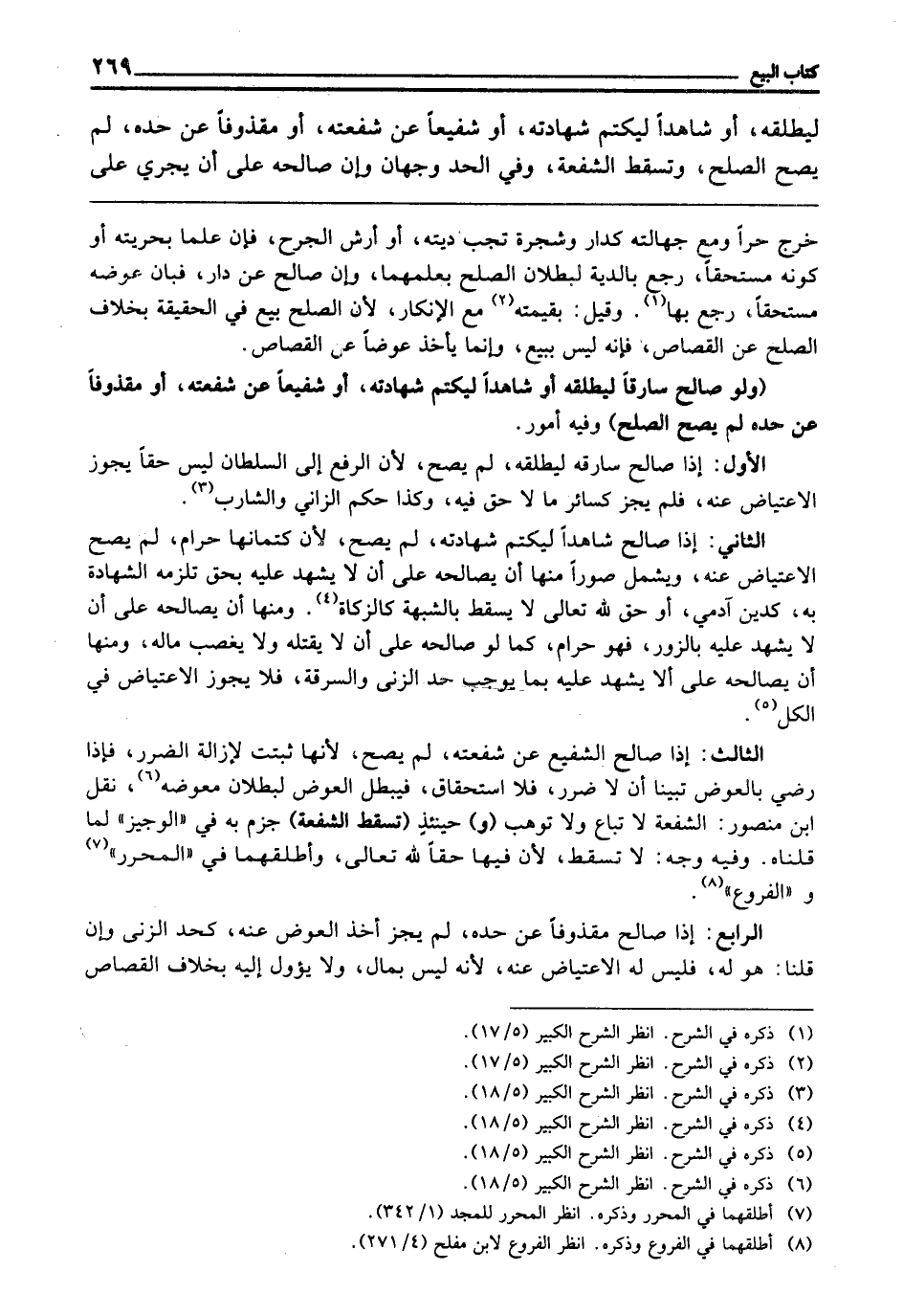 (وَلَوْ صَالَحَ سَارِقًا لِيُطْلِقَهُ، أَوْ شَاهِدًا لِيَكْتُمَ شَهَادَتَهُ، أَوْ شَفِيعًا عَنْ شُفْعَتِهِ، أَوْ مَقْذُوفًا عَنْ حَدِّهِ لَمْ يَصِحَّ الصُّلْحُ) ، وَفِيهِ أُمُورٌ: