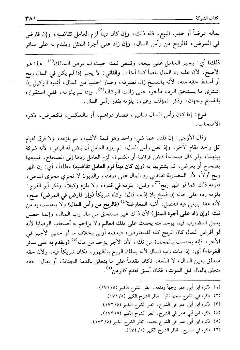 وَقَالَ الْأَزَجِيُّ: إِنْ قُلْنَا هُمَا شَيْءٌ وَاحِدٌ وَهُوَ قِيمَةُ الْأَشْيَاءِ لَمْ يَلْزَمْهُ، وَلَا فَرْقَ لِقِيَامِ كُلِّ وَاحِدٍ مَقَامَ الْآخَرِ، وَإِذَا نَضَّ رَأْسُ الْمَالِ لَمْ يَلْزَمِ الْعَامِلَ أَنْ يَنِضَّ لَهُ الْبَاقِيَ ; لِأَنَّهُ شَرِكَةٌ بَيْنَهُمَا، وَلَوْ كَانَ صِحَاحًا فَنَضَّ قِرَاضَةً أَوْ مُكَسَّرَةً لَزِمَ الْعَامِلَ رَدُّهَا إِلَى الصِّحَاحِ، فَيَبِيعُهَا بِصِحَاحٍ أَوْ بِعَرَضٍ ثُمَّ يَشْتَرِيهَا بِهِ (وَإِنْ كَانَ دَيْنًا لَزِمَ الْعَامِلَ تَقَاضِيهِ) مُطْلَقًا أَيْ إِنْ ظَهَرَ رِبْحٌ أَوْ لَا ; لِأَنَّ الْمُضَارَبَةَ تَقْتَضِي رَدَّ الْمَالِ عَلَى صِفَتِهِ، وَالدُّيُونُ لَا تَجْرِي مَجْرَى النَّاضِّ، فَلَزِمَهُ ذَلِكَ كَمَا لَوْ ظَهَرَ رِبْحٌ، وَقِيلَ: يَلْزَمُهُ فِي قَدْرِهِ، وَلَا يَلْزَمُ وَكِيلًا، وَذِكَرَ أَبُو الْفَرَجِ: يَلْزَمُهُ رَدُّهُ عَلَى حَالِهِ إِنْ فَسَخَ بِلَا إِذْنِهِ، قَالَ: وَكَذَا شَرِيكًا (وَإِنْ قَارَضَ فِي الْمَرَضِ) صَحَّ ; لِأَنَّهُ عَقْدٌ يَنْبَغِي فِيهِ الْفَضْلُ أَشْبَهَ الْمُعَاوَضَةَ (فَالرِّبْحُ مِنْ رَأْسِ الْمَالِ) وَلَا يُحْتَسَبُ بِهِ مِنْ ثُلُثِهِ (وَإِنْ زَادَ عَلَى أُجْرَةِ الْمِثْلِ) لِأَنَّ ذَلِكَ غَيْرُ مُسْتَحَقٍّ مِنْ مَالِ رَبِّ الْمَالِ، وَإِنَّمَا حَصَلَ بِعَمَلِ الْمُضَارِبِ فِيمَا يُوجَدُ مِنْهُ يَحْدُثُ عَلَى مِلْكِ الْعَامِلِ وَلَا يُزَاحِمُ بِهِ أَصْحَابَ الْوَصَايَا ; لِأَنَّهُ لَوْ أَقْرَضَ الْمَالَ كَانَ الرِّبْحُ كُلُّهُ لِلْمُقْتَرِضِ، فَبَعْضُهُ أَوْلَى بِخِلَافِ مَا لَوْ حَابَى الْأَجِيرَ فِي الْأَجْرِ، فَإِنَّهُ يُحْتَسَبُ بِالْمُحَابَاةِ مِنْ ثُلُثِهِ ; لَأَنَّ الْأَجْرَ يُؤْخَذُ مِنْ مَالِهِ (وَيُقَدَّمُ بِهِ عَلَى سَائِرِ الْغُرَمَاءِ) أَيْ إِذَا مَاتَ رَبُّ الْمَالِ ; لِأَنَّهُ يَمْلِكُ الرِّبْحَ بِالظُّهُورِ، فَكَانَ شَرِيكًا فِيهِ، وَلِأَنَّ حَقَّهُ مُتَعَلِّقٌ بِعَيْنِ الْمَالِ لَا الذِّمَّةِ، فَكَانَ مُقَدَّمًا عَلَى مَا يَتَعَلَّقُ بِالذِّمَّةِ كَالْجِنَايَةِ، أَوْ يُقَالُ: حَقُّهُ مُتَعَلِّقٌ بِالْمَالِ قَبْلَ الْمَوْتِ، فَكَانَ أَسْبَقَ، فَقُدِّمَ كَالرَّهْنِ.