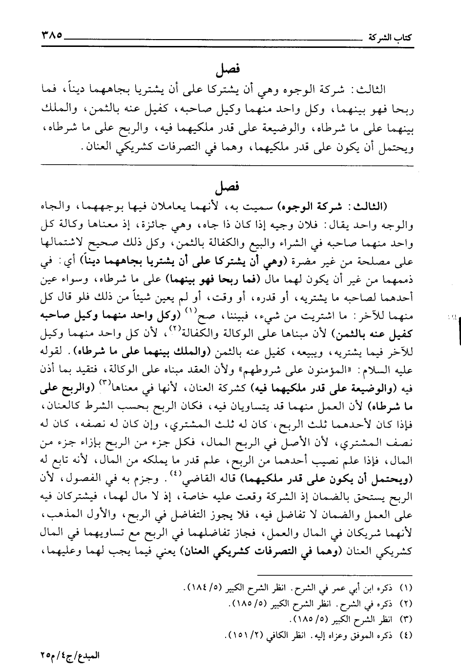 ـــــــــــــــــــــــــــــQ [فَصْلٌ الضَّرْبُ الثَّالِثُ شَرِكَةُ الْوُجُوهِ]