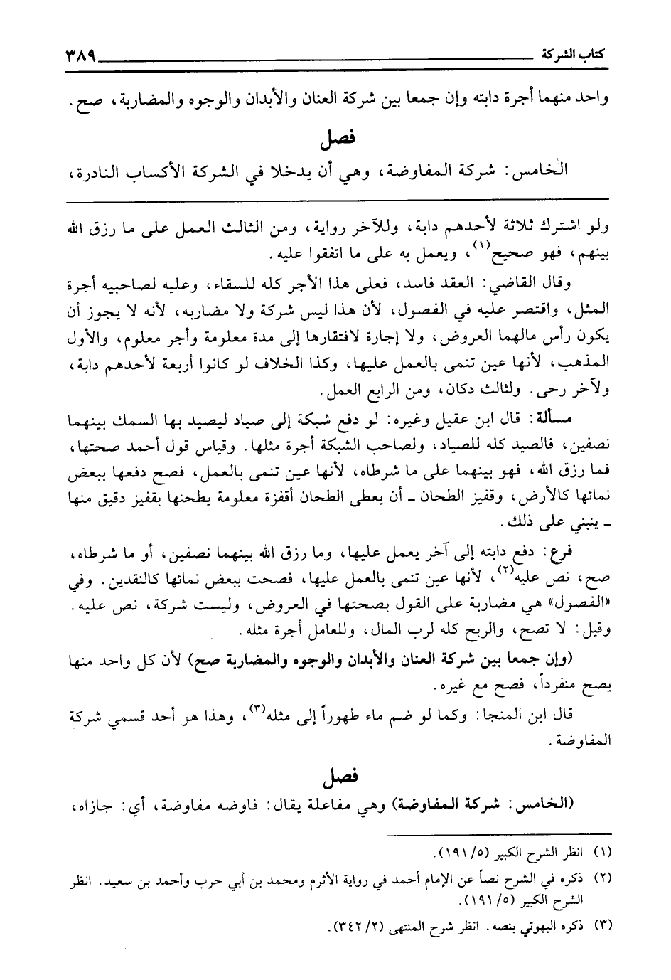 فَصْلٌ الْخَامِسُ: شَرِكَةُ الْمُفَاوَضَةِ، وَهِيَ أَنْ يُدْخِلَا فِي الشَّرِكَةِ الْأَكْسَابَ النَّادِرَةَ