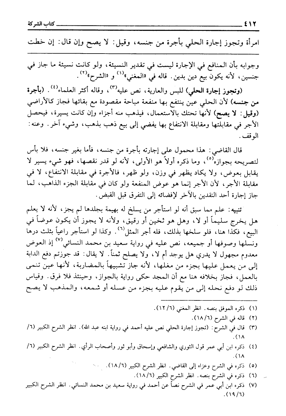 (وَتَجُوزُ إِجَارَةُ الْحُلِيِّ) لِلُبْسٍ وَالْعَارِيَةُ، نَصَّ عَلَيْهِ، وَقَالَهُ أَكْثَرُ الْعُلَمَاءِ (بِأُجْرَةٍ مِنْ جِنْسِهِ) لِأَنَّ الْحُلِيَّ عَيْنٌ يُنْتَفَعُ بِهَا مَنْفَعَةً مُبَاحَةً مَقْصُودَةً مَعَ بَقَائِهَا، فَجَازَ كَالْأَرَاضِي (وَقِيلَ: لَا يَصِحُّ) لِأَنَّهَا تَحْتَكُّ بِالِاسْتِعْمَالِ فَيَذْهَبُ مِنْهُ أَجْزَاءٌ وَإِنْ كَانَتْ يَسِيرَةً، فَيَحْصُلُ الْأَجْرُ فِي مُقَابَلَتِهَا وَمُقَابَلَةُ الِانْتِفَاعِ بِهَا يُفْضِي إِلَى بَيْعِ ذَهَبٍ بِذَهَبٍ وَشَيْءٍ آخَرَ، وَعَنْهُ: الْوَقْفُ.