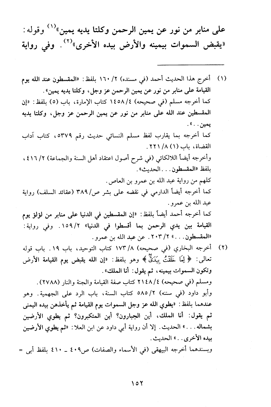 على منابر من نور عن يمين الرحمن وكلتا يديه يمين وقوله يقبض السموات بيمينه والأرض بيده الأخرى وفي رواية