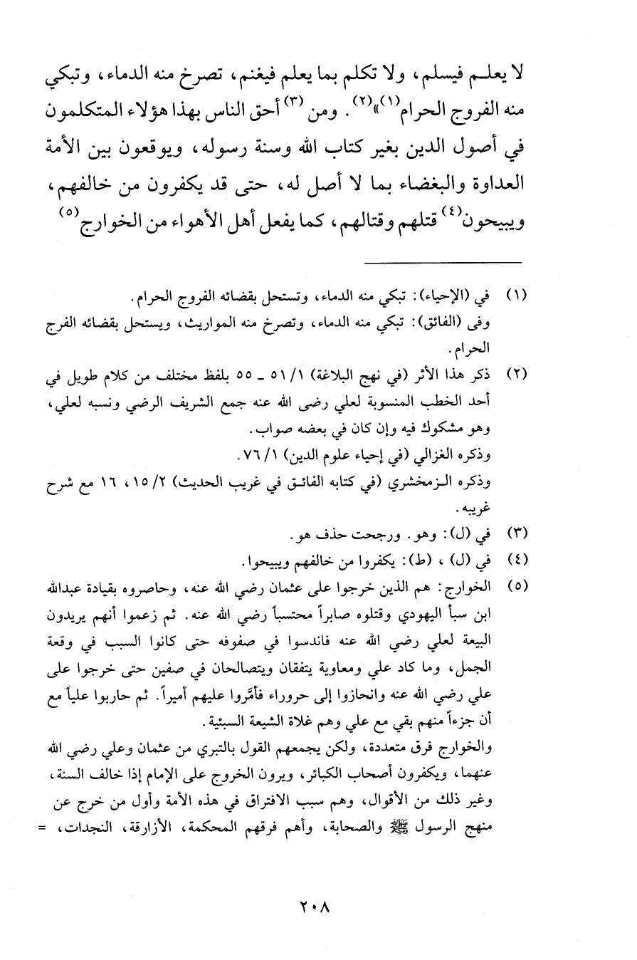 لا يعلم فيسلم ولا تكلم بما يعلم فيغنم تصرخ منه الدماء وتبكي منه الفروج الحرام ومن أحق الناس بهذا هؤلاء المتكلمون في أصول الدين بغير كتاب الله وسنة رسوله ويوقعون بين الأمة العداوة والبغضاء بما لا أصل له حتى قد يكفرون من خالفهم ويبيحون قتلهم وقتالهم كما يفعل أهل الأهواء من الخوارج