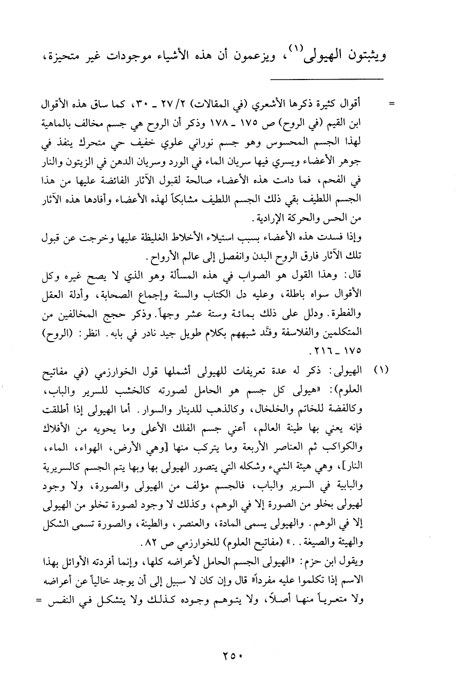 ويثبتون الهيولي ويزعمون أن هذه الأشياء موجودات غير متحيزة