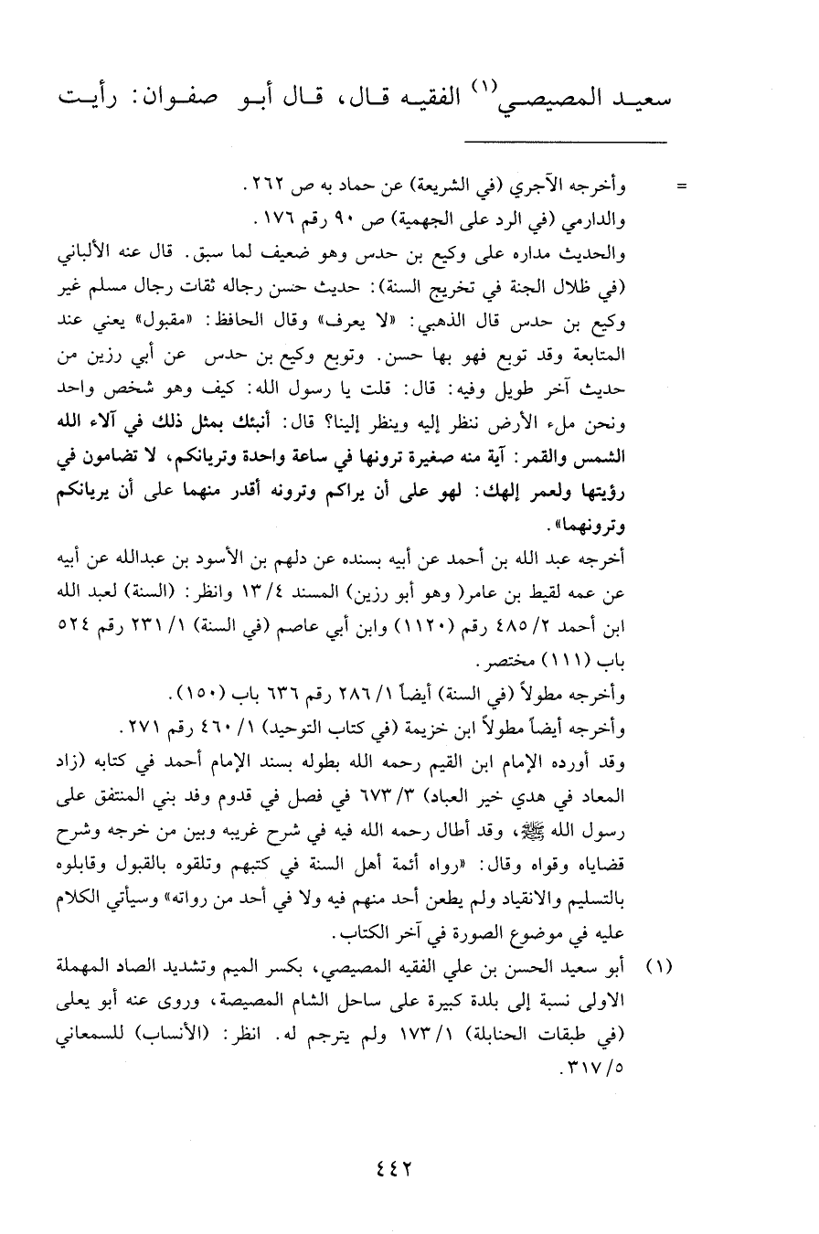 سعيد المصيصي الفقيه قال قال أبو صفوان رأيت