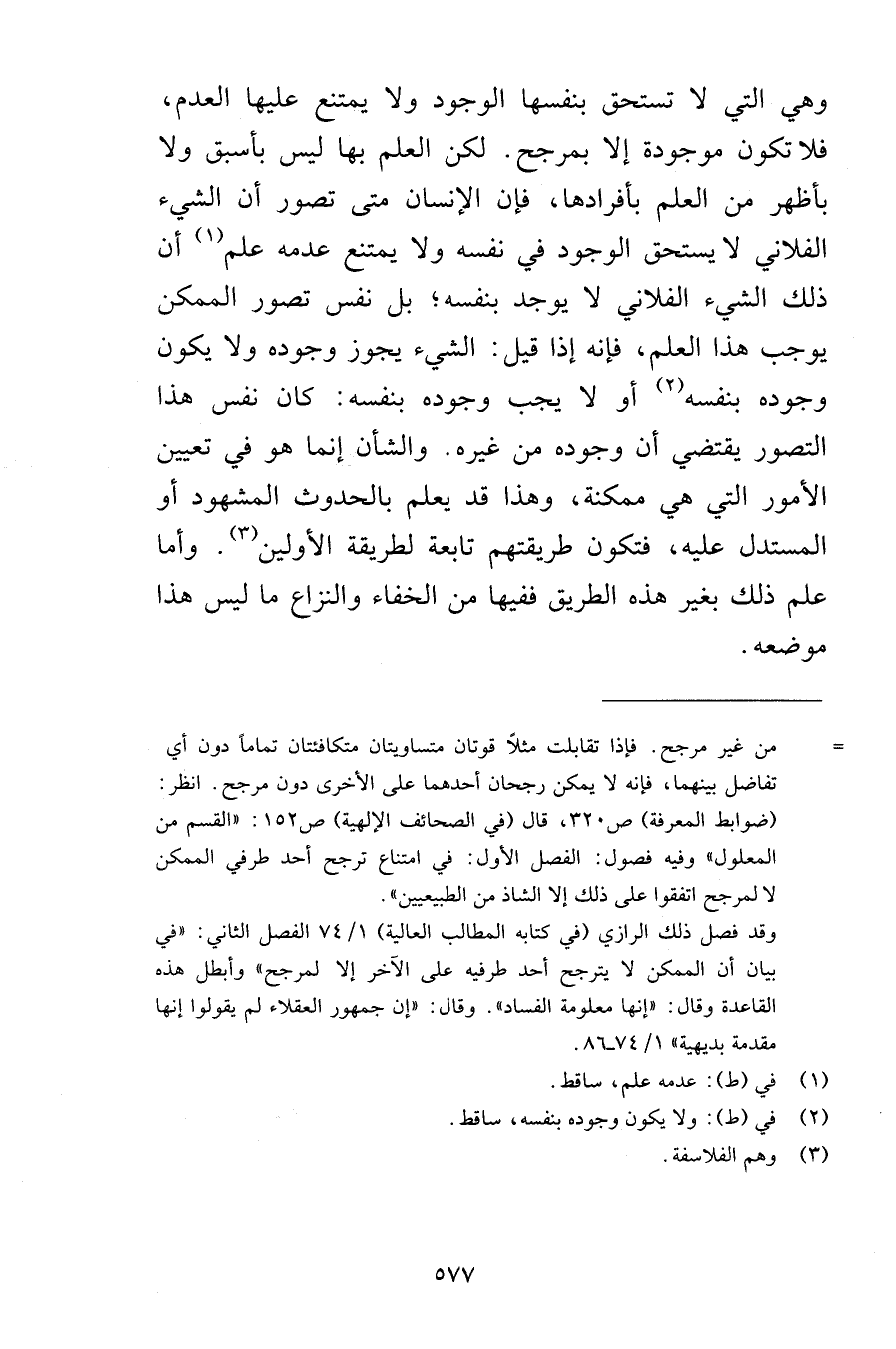 وهي التي لا تستحق بنفسها الوجود ولا يمتنع عليها العدم فلا تكون موجودة إلا بمرجح لكن العلم بها ليس بأسبق ولا بأظهر من العلم بأفرادها فإن الإنسان متى تصور أن الشيء الفلاني لا يستحق الوجود في نفسه ولا يمتنع عدمه علم أن ذلك الشيء الفلاني لا يوجد بنفسه بل نفس تصور الممكن يوجب هذا العلم فإنه إذا قيل الشيء يجوز وجوده ولا يكون وجوده بنفسه أو لا يجب وجوده بنفسه كان نفس هذا التصور يقتضي أن وجوده من غيره والشأن إنما هو في تعيين الأمور التي هي ممكنة وهذا قد يعلم بالحدوث المشهود أو المستدل عليه فتكون طريقتهم تابعة لطريقة الأولين وأما علم ذلك بغير هذه الطريق ففيها من الخفاء والنزاع ما ليس هذا موضعه
