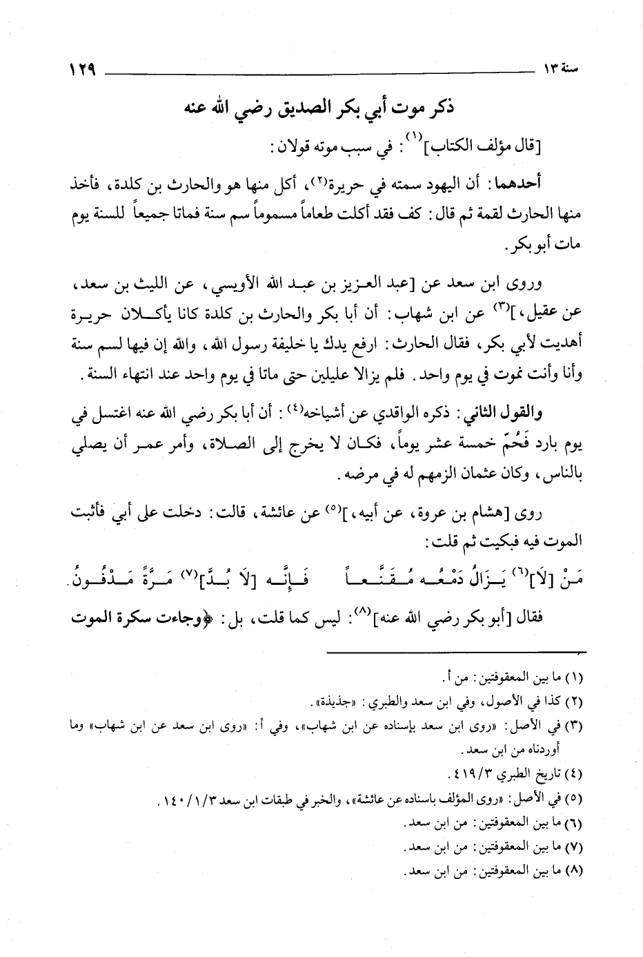 ذكر موت أَبِي بَكْرٍ الصِّدِّيقِ رَضِيَ اللَّهُ عَنْهُ
