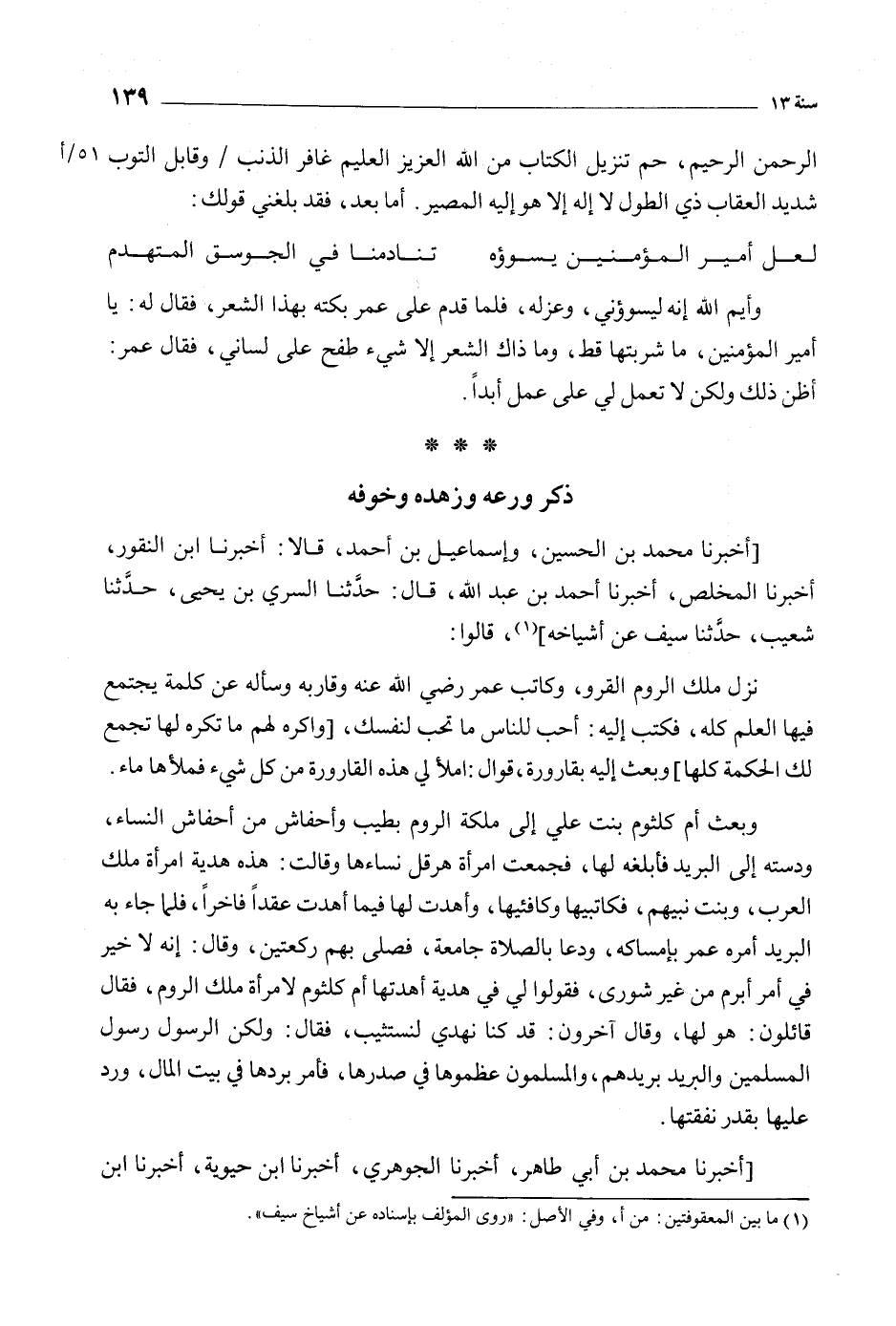 [أَخْبَرَنَا مُحَمَّدُ بْنُ الْحُسَيْنِ، وَإِسْمَاعِيلُ بْنُ أَحْمَدَ، قالا: أخبرنا ابن النقور، أخبرنا المخلص، أَخْبَرَنَا أَحْمَدُ بْنُ عَبْدِ اللَّهِ، قَالَ: حَدَّثَنَا السَّرِيُّ بن يحيى، حَدَّثَنَا شُعَيْبٌ، حَدَّثَنَا سَيْفٌ عَنْ أَشْيَاخِهِ] [1] ، قَالُوا: