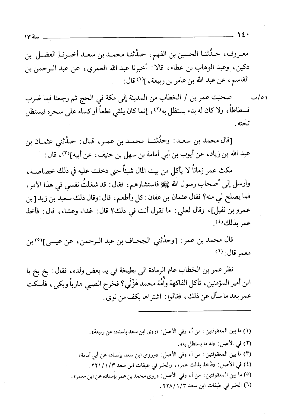 [4] في الأصل: «فأخذ بذلك عمر» ، والخبر في طبقات ابن سعد 3/ 1/ 221.