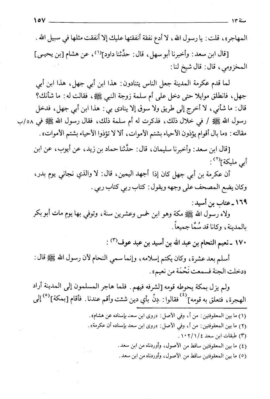 الْمُهَاجِرِ» ، قُلْتُ: يَا رَسُولَ اللَّهِ، لا أَدَعُ نَفَقَةً أَنْفَقْتُهَا عَلَيْكَ إِلا أَنْفَقْتُ مِثْلَهَا فِي سَبِيلِ اللَّهِ. [قَالَ ابْنُ سَعْدٍ: وَأَخْبَرَنَا أَبُو سَهْلٍ، قَالَ: حَدَّثَنَا دَاوُدُ] [1] ، عَنْ هِشَامِ [بْنِ يحيى] المخزومي، قال: قال شَيْخٌ لَنَا: