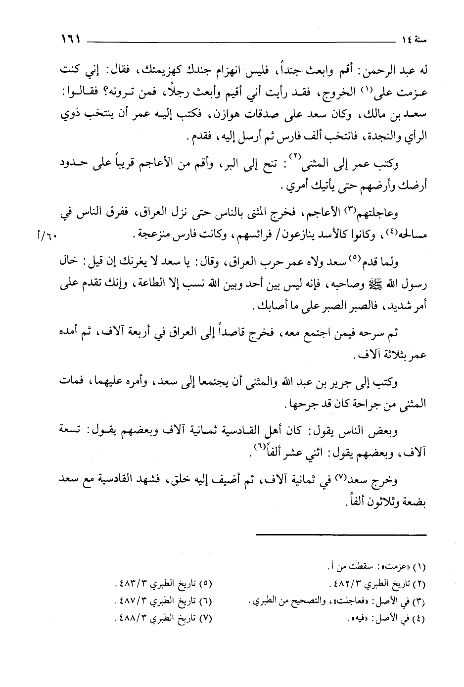 وبعض الناس يقول: كان أهل القادسية ثمانية آلاف وبعضهم يقول: تسعة آلاف، وبعضهم يقول: اثني عشر ألفا [6] .