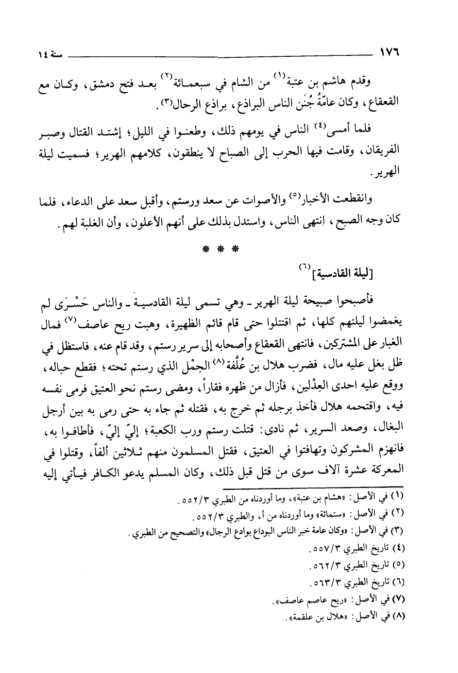 وانقطعت الأخبار [5] والأصوات عن سعد ورستم، وأقبل سعد على الدعاء، فلما كان وجه الصبح، انتهى الناس، واستدل بذلك على أنهم الأعلون، وأن الغلبة لهم