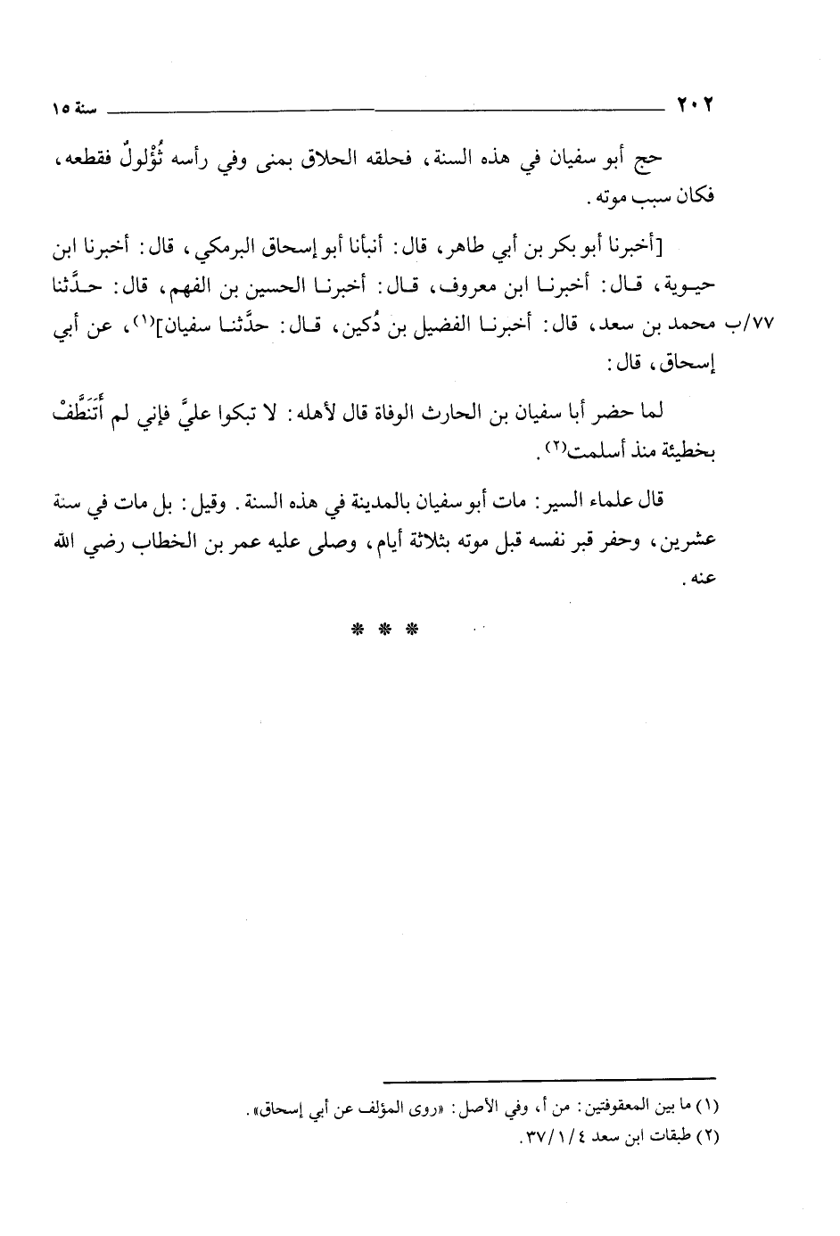 [أَخْبَرَنَا أَبُو بَكْرِ بْنُ أَبِي طَاهِرٍ، قَالَ: أَنْبَأَنَا أَبُو إِسْحَاقَ الْبَرْمَكِيُّ، قَالَ: أَخْبَرَنَا ابْنُ حيوية، قَالَ: أَخْبَرَنَا ابْن معروف، قال: أخبرنا الحسين بن الفهم، قال: حدثنا مُحَمَّدُ بْنُ سَعْدٍ، قَالَ: أَخْبَرَنَا الْفُضَيْلُ بْنُ دُكَيْنٍ، قَالَ: حَدَّثَنَا سُفْيَانُ] [1] ، عَنْ أَبِي إِسْحَاقَ، قَالَ: