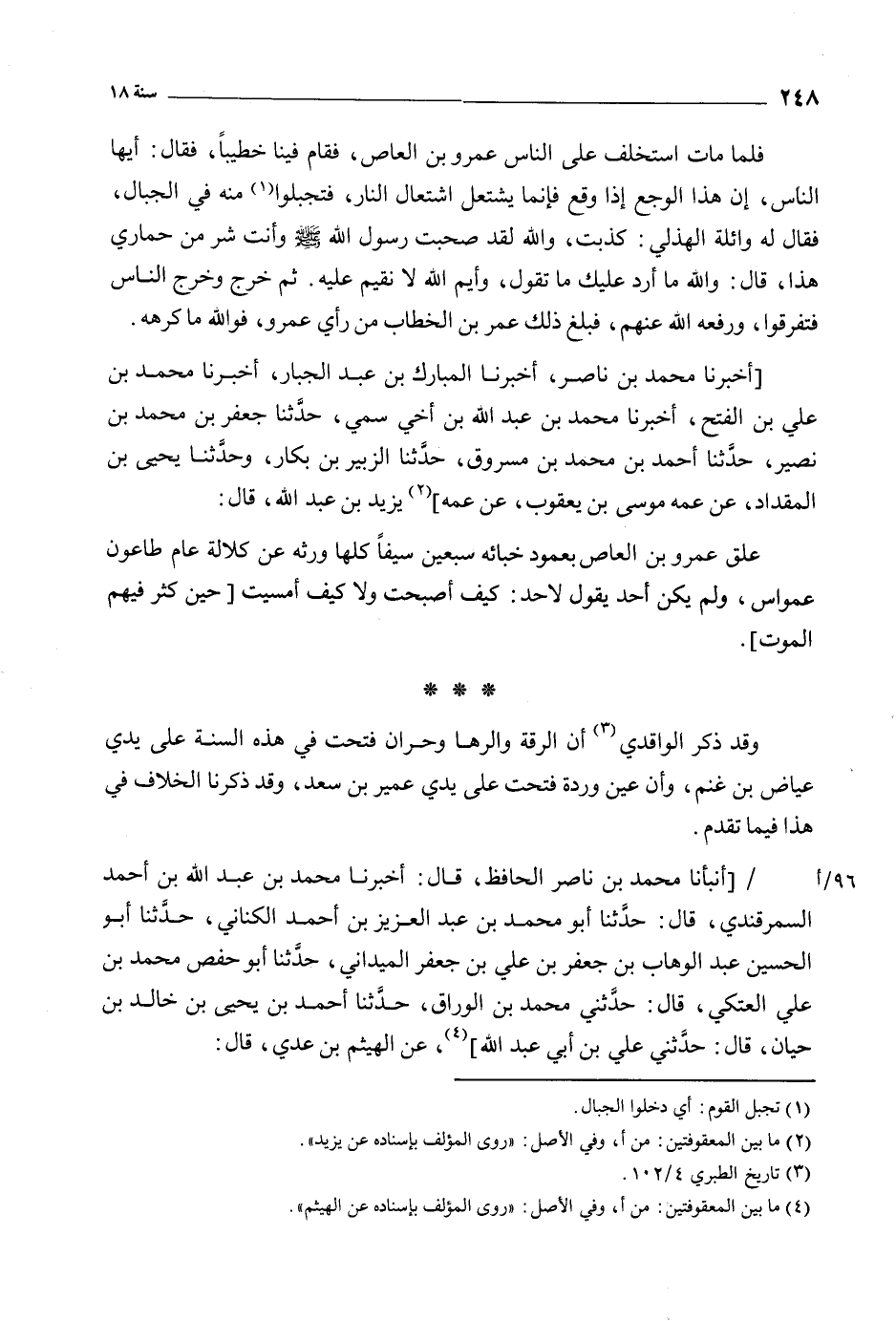 وقد ذكر الواقدي [3] أن الرقة والرها وحران فتحت في هذه السنة على يدي عياض بن غنم، وأن عين وردة فتحت على يدي عمير بن سعد، وقد ذكرنا الخلاف في هذا فيما تقدم.