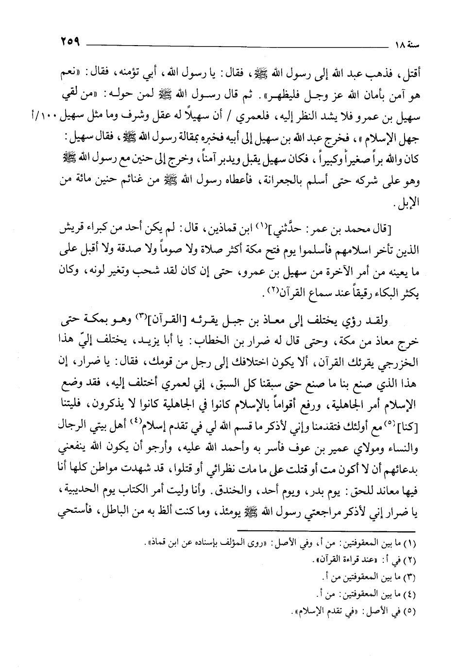 [قَالَ مُحَمَّدُ بْنُ عُمَرَ: حَدَّثَنِي] [1] ابْنُ قماذين، قَالَ: لَمْ يَكُنْ أَحَدٌ مِنْ كُبَرَاءِ قُرَيْشٍ الَّذِينَ تَأَخَّرَ إِسْلامُهُمْ فَأَسْلَمُوا يَوْمَ فَتْحِ مَكَّةَ أَكْثَرَ صَلاةً وَلا صَوْمًا وَلا صَدَقَةً وَلا أَقْبَلُ عَلَى مَا يُعِينُهُ مِنْ أَمْرِ الآخِرَةِ مِنْ سُهَيْلِ بْنِ عَمْرٍو، حَتَّى إِنْ كَانَ لَقَدْ شَحَبَ وَتَغَيَّرَ لَوْنُهُ، وَكَانَ يُكْثِرُ الْبُكَاءَ رَقِيقًا عند سماع القرآن [2] .
