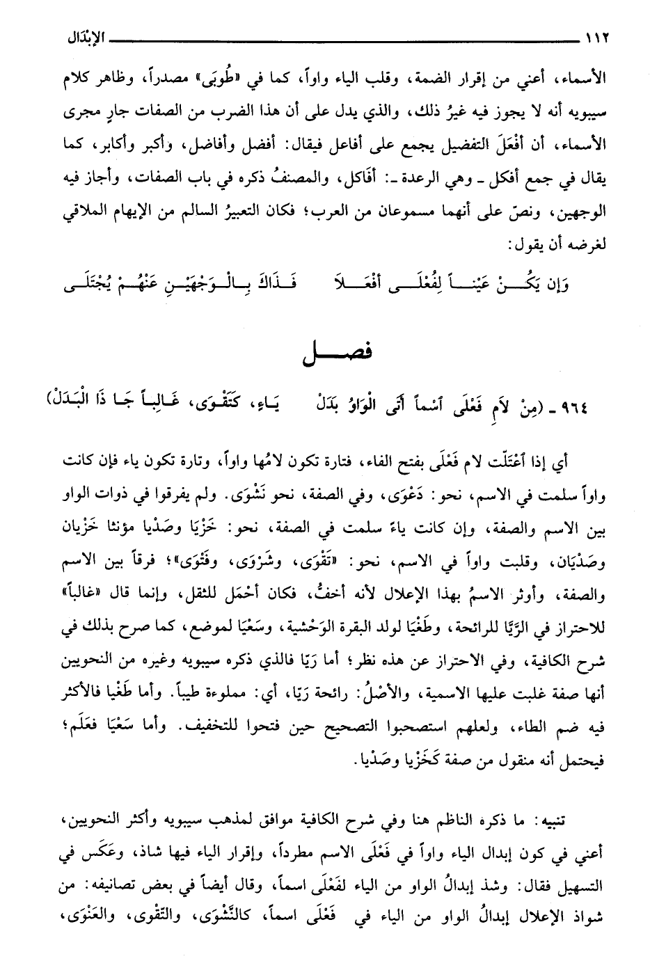 مِنْ لاَمِ فَعْلى اسْمًا أَتَى الْوَاوُ بَدَلْ ... يَاء كَتَقْوَى غَالِبًا جَا ذَا الْبَدَلْ
