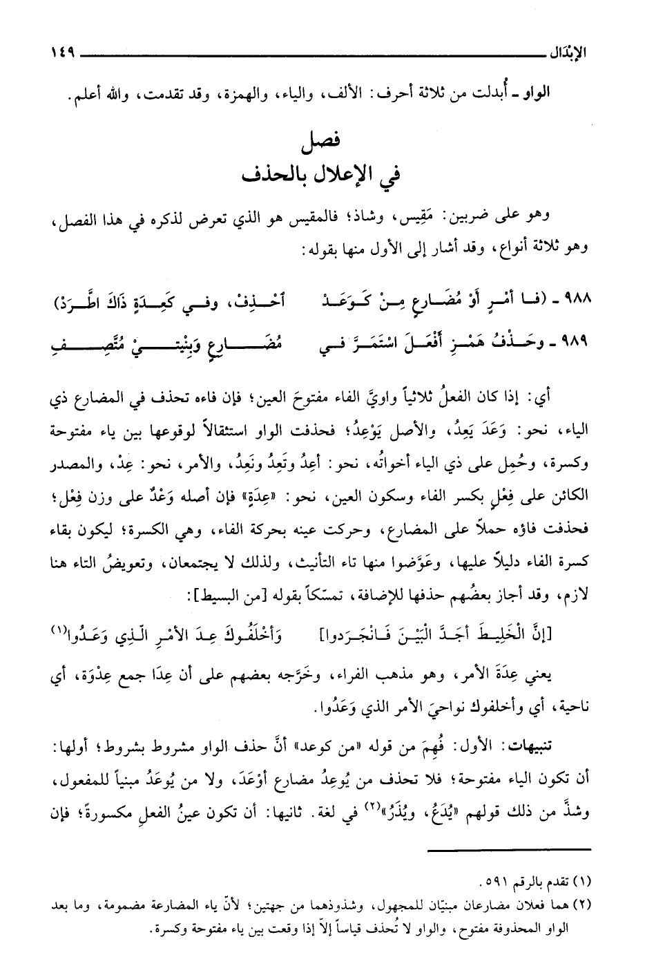 فَا أَمْرَ أوْ مُضَارِعٍ مِنْ كَوَعَدْ ... احْذِفْ وَفِي كَعِدَةٍ ذَاكَ اطَّرَدْ