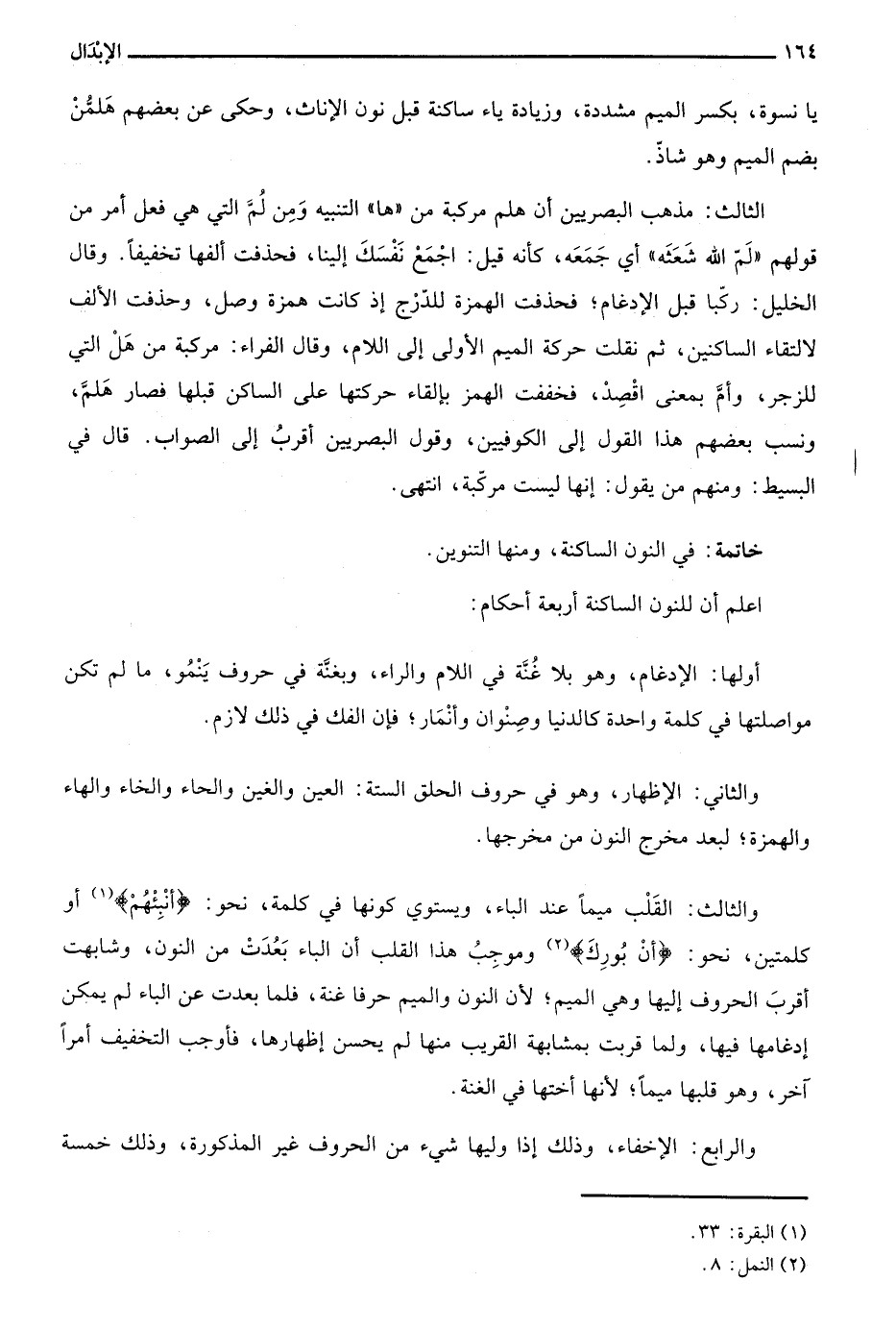 خاتمة: في النون الساكنة، ومنها التنوين.