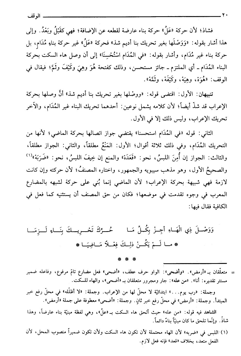 1 اللبس في "ضربه" لأن الهاء محتملة لأن تكون هاء السكت ولأن تكون ضميرا منصوب المحل، لأن الفعل متعد، بخلاف "قعد" فإنه فعل لازم.
