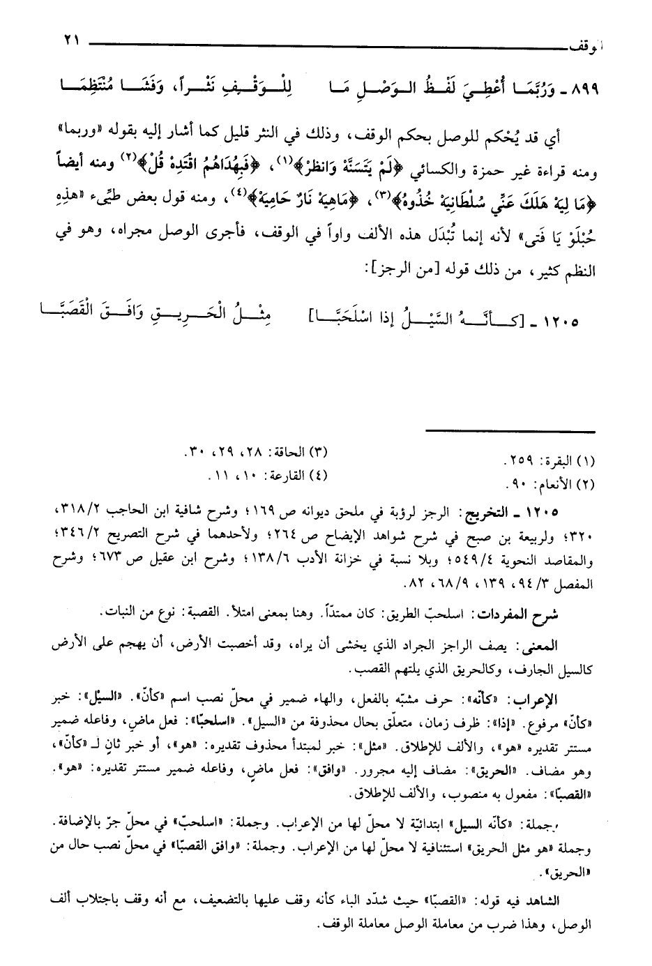 الشاهد فيه قوله: "القصبا" حيث شدد الباء كأنه وقف عليها بالتضعيف، مع أنه وقف باجتلاب ألف الوصل، وهذا ضرب من معاملة الوصل معاملة الوقف.