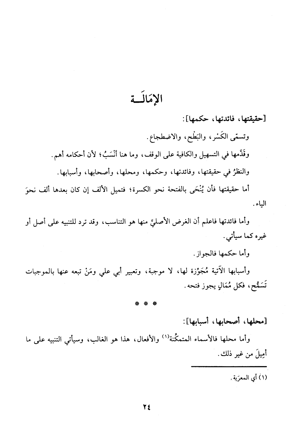 وأسبابها الآتية مجوزة لها، ولا موجبة، وتعبير أبي علي ومن تبعه عنها بالموجبات تَسَمُّح، فكل مُمَال يجوز فتحه.