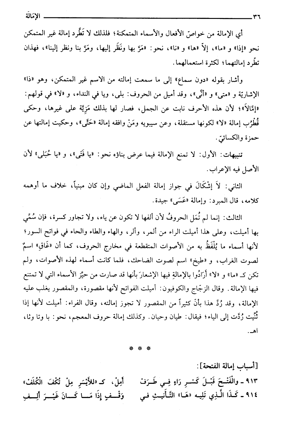 تنبيهات: الأول: لا تمنع الإمالة فيما عرض بناؤه نحو: "يا فتى"، و"يا حبلى" لأن الأصل فيه الإعراب.
