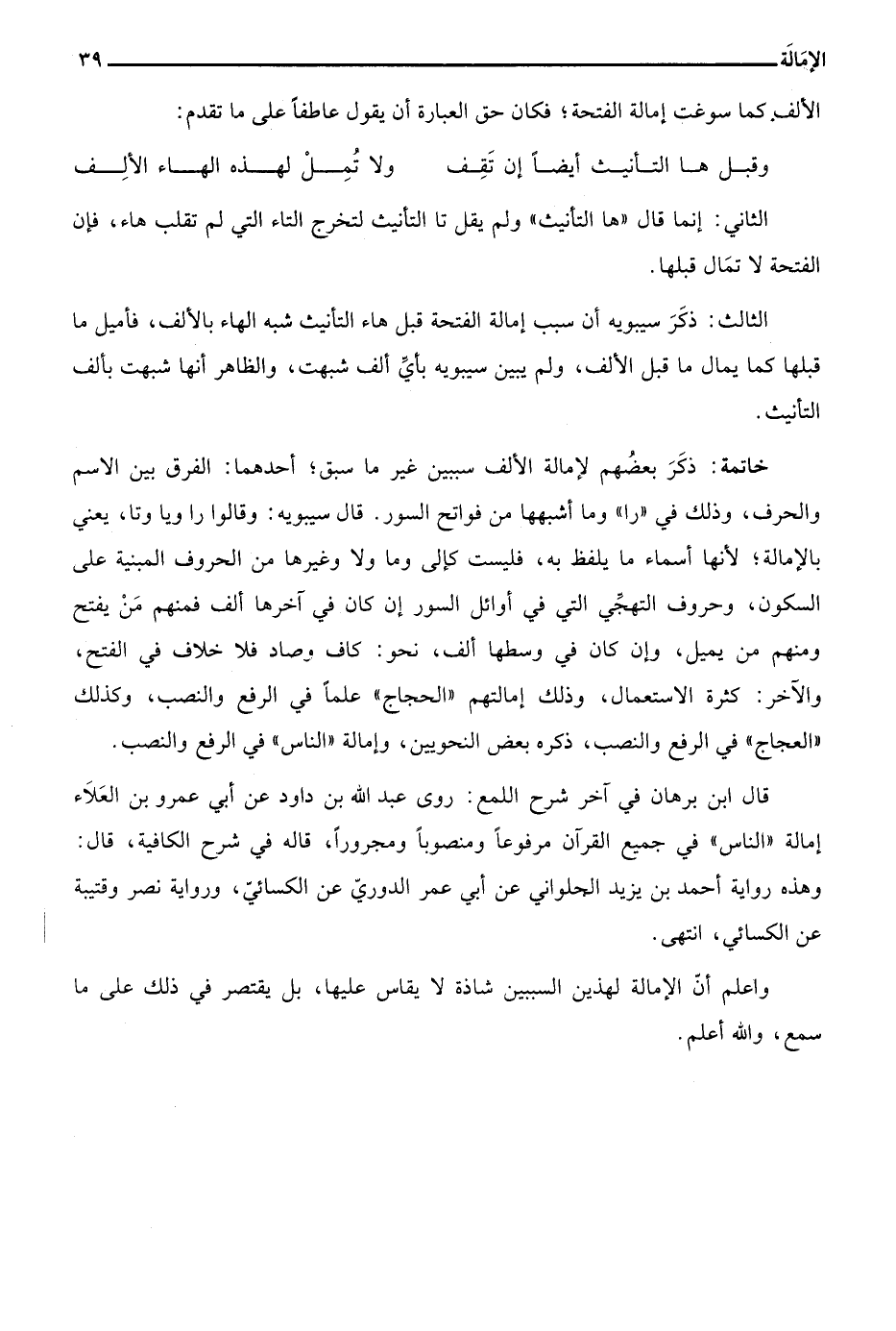 الألف كما سوغت إمالة الفتحة؛ فكان حق العبارة أن يقول عاطفا على ما تقدم: