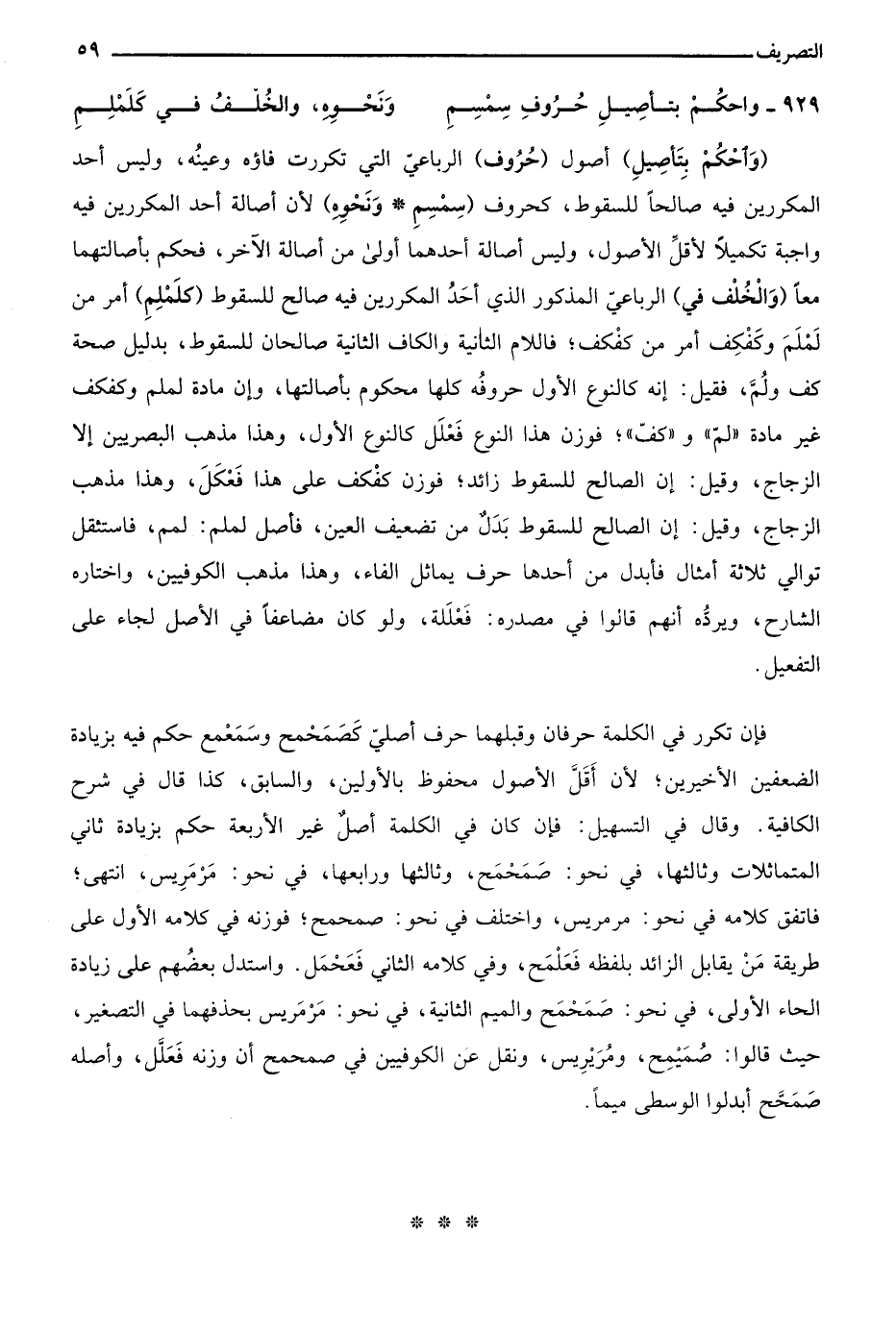 وَاحْكُمْ بِتَأْصِيْل حُرُوفِ سِمْسِم ... وَنَحْوِهِ وَالْخُلْفُ فِي كَلَمْلِم