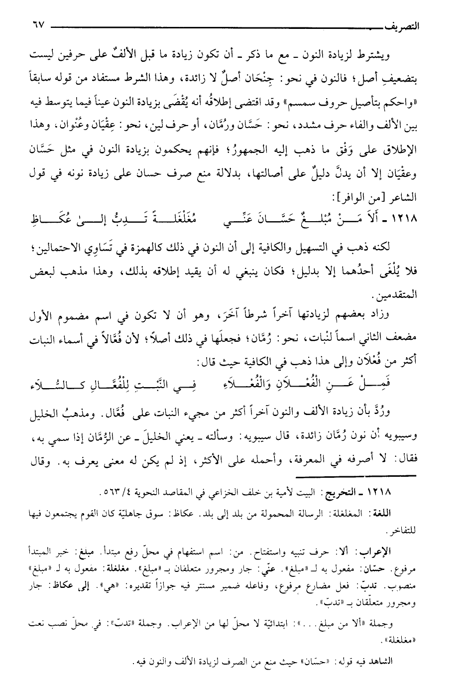 1218- التخريج: البيت لأمية بن خلف الخزاعي في المقاصد النحوية 4/ 563.