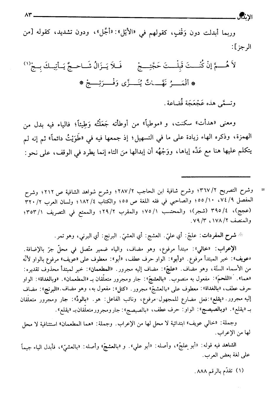 = وشرح التصريح 2/ 367؛ وشرح شافية ابن الحاجب 2/ 287؛ وشرح شواهد الشافية ص212؛ وشرح المفصل 9/ 74، 10/ 55؛ والصاحبي في فقه اللغة ص55؛ والكتاب 4/ 182؛ ولسان العرب 2/ 320 "عجج"، 4/ 395 "شجر"؛ والمحتسب 1/ 75؛ والمقرب 2/ 29؛ والممتع في التصريف 1/ 353؛ والمصنف 2/ 178، 3/ 79.