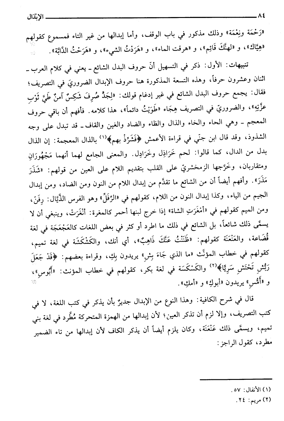 قال في شرح الكافية: وهذا النوع من الإبدال جدير بأن يذكر في كتب اللغة، لا في كتب التصريف، وإلا لزم أن تذكر العين؛ لأن إبدالها من الهمزة المتحركة مطرد في لغة بني تميم، ويسمى ذلك عنعنة، وكان يلزم أيضا أن يذكر الكاف لأن إبدالها من تاء الضمير مطرد، كقول الراجز:
