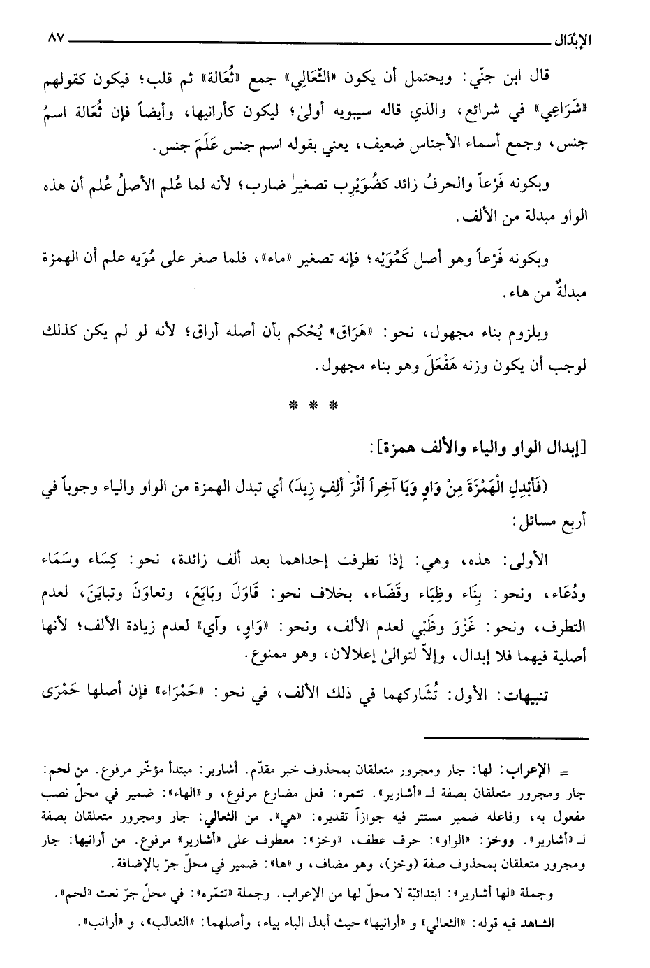 "فَأَبْدِلِ الْهَمْزَةَ مِنْ وَاوٍ وَيَا آخِرًا اثْرَ ألِفٍ زيدَ" أي تبدل الهمزة من الواو والياء وجوبا في أربع مسائل: