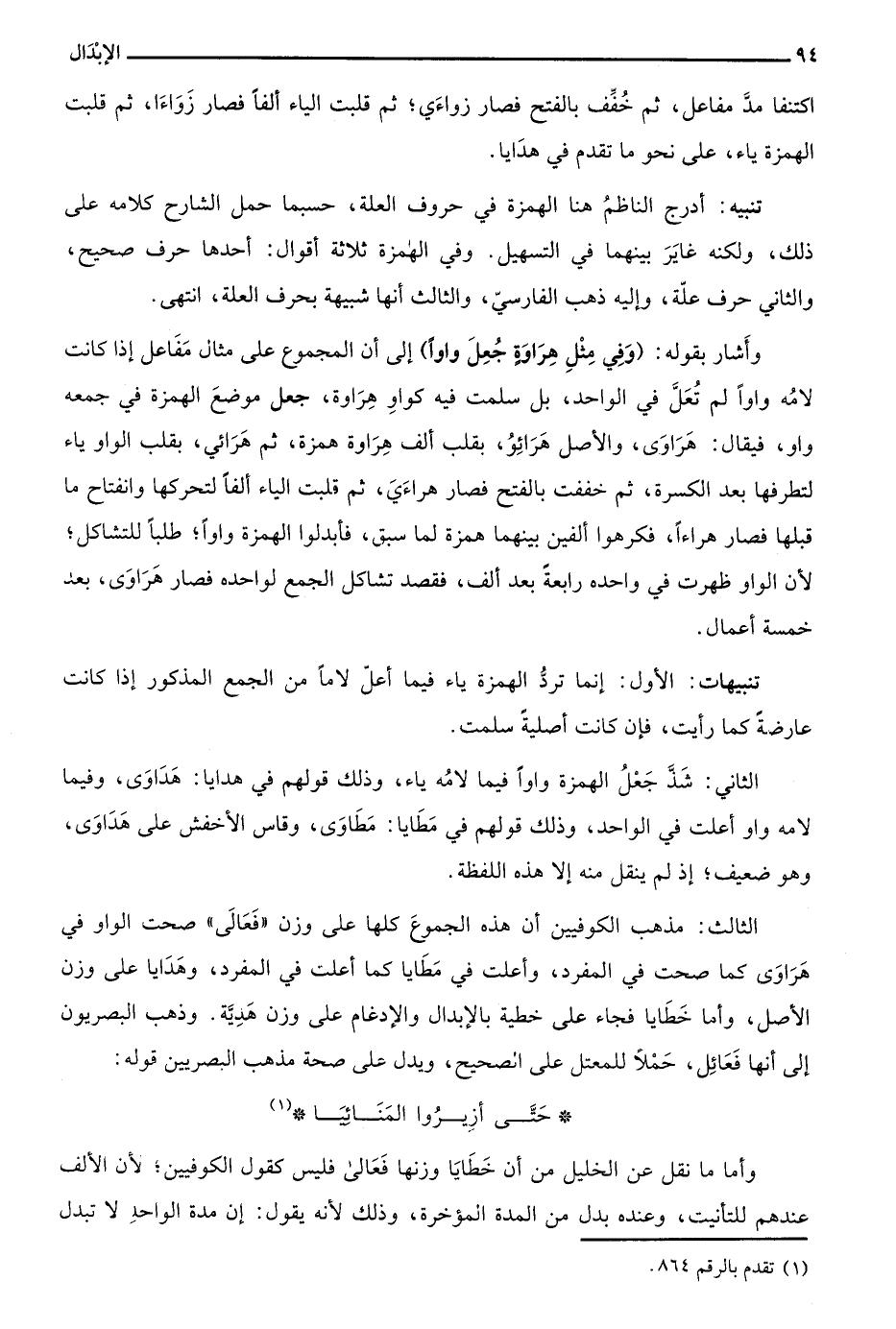 تنبيهات: الأول: إنما ترد الهمزة ياء فيما أعل لاما من الجمع المذكور إذا كانت عارضة كما رأيت، فإن كانت أصلية سلمت.