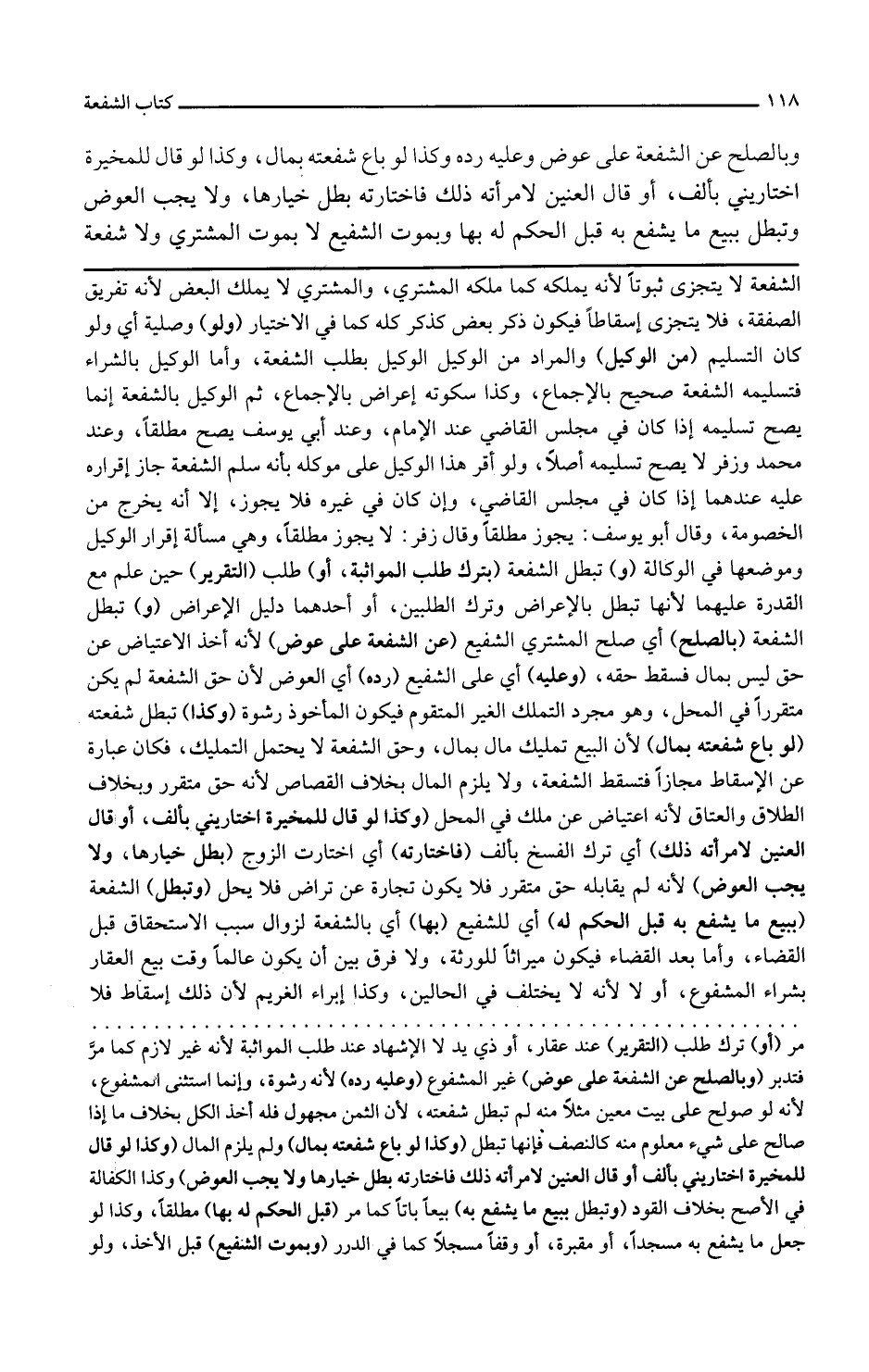 الشفعة لا يتجزأ ثبوتا لأنه يملكه كما ملكه المشتري والمشتري لا يملك البعض لأنه تفريق الصفقة فلا يتجزأ إسقاطا فيكون ذكر بعضه كذكر كله كما في الاختيار ولو وصلية أي ولو كان التسليم من الوكيل والمراد من الوكيل الوكيل بطلب الشفعة وأما الوكيل بالشراء فتسليمه الشفعة صحيح بالإجماع وكذا سكوته إعراض بالإجماع ثم الوكيل بالشفعة إنما يصح تسليمه إذا كان في مجلس القاضي عند الإمام وعند أبي يوسف يصح مطلقا وعند محمد وزفر لا يصح تسليمه أصلا ولو أقر هذا الوكيل على موكله بأنه سلم الشفعة جاز إقراره عليه عندهما إذا كان في مجلس القاضي وإن كان في غيره فلا يجوز إلا أنه يخرج من الخصومة