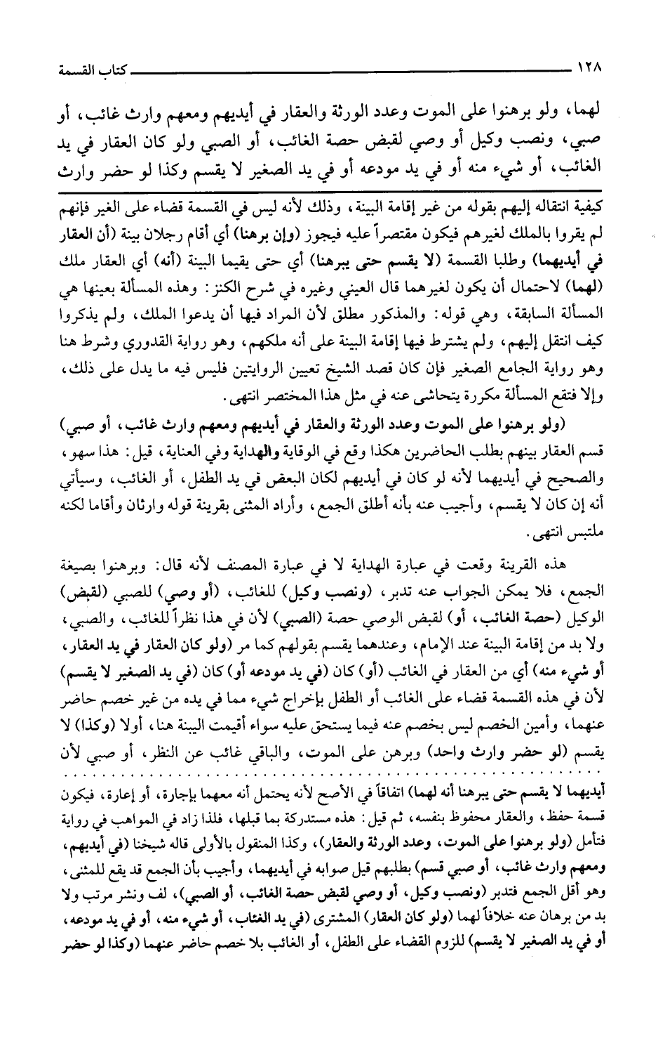 ولو برهنوا على الموت وعدد الورثة والعقار في أيديهم ومعهم وارث غائب أو صبي قسم العقار بينهم بطلب الحاضرين هكذا وقع في الوقاية والهداية