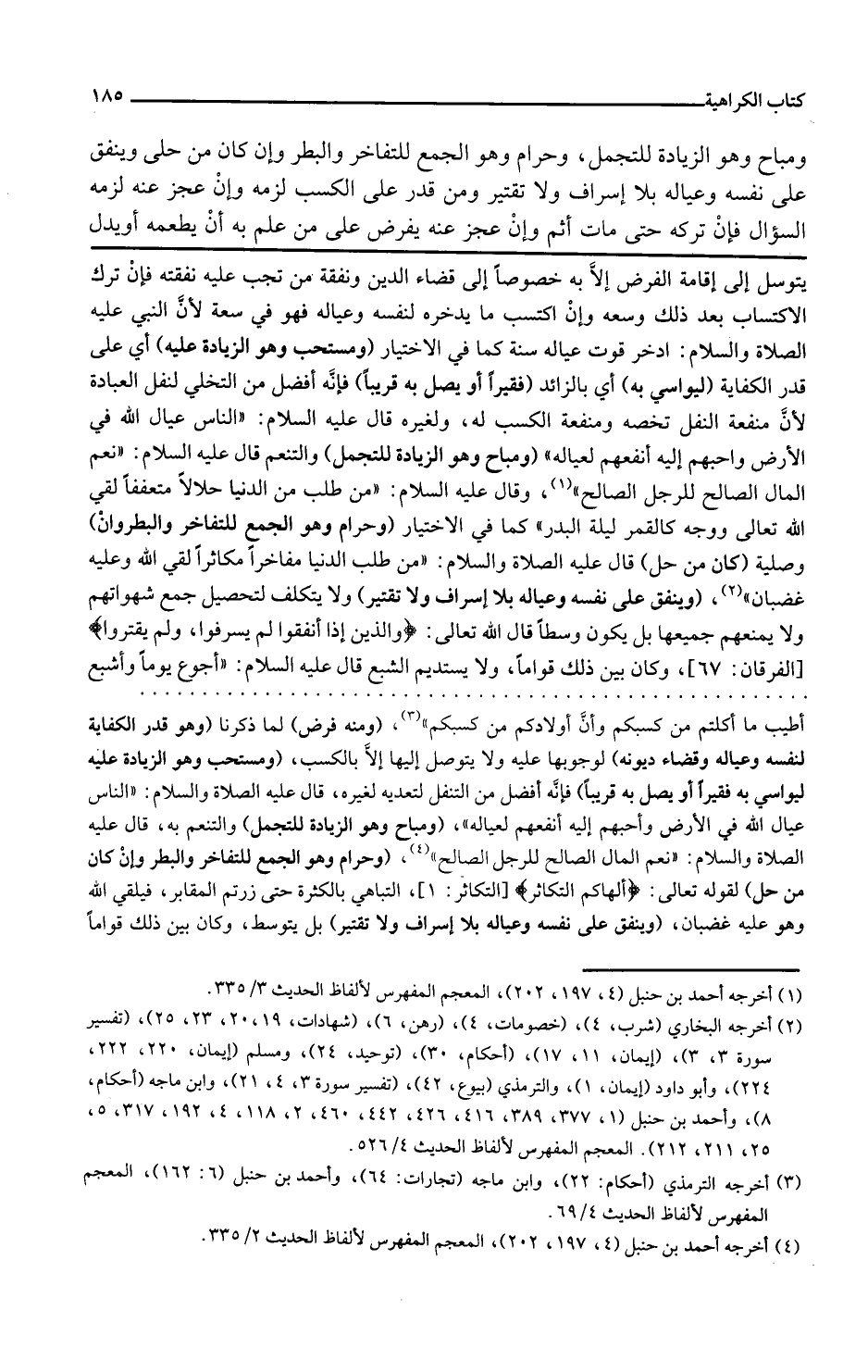 وحرام وهو الجمع للتفاخر والبطر وإن وصلية كان من حل قال عليه الصلاة والسلام من طلب الدنيا مفاخرا مكاثرا لقي الله وهو عليه غضبان
