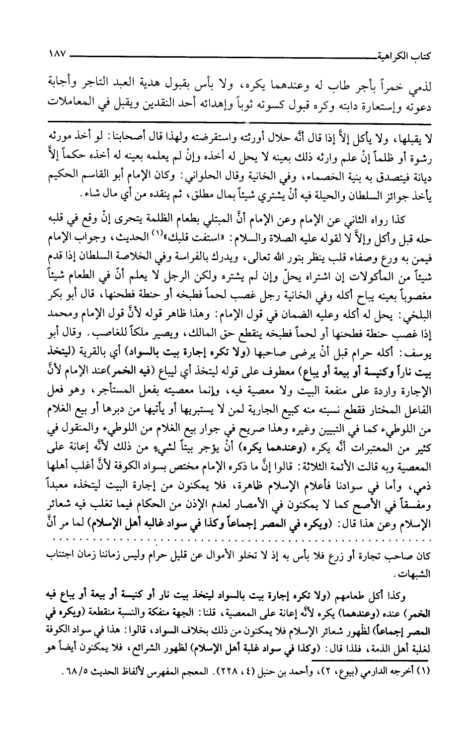 وفي الخانية وقال الحلواني وكان الإمام أبو القاسم الحكيم يأخذ جوائز السلطان والحيلة فيه أن يشتري شيئا بمال مطلق ثم ينقده من أي مال شاء كذا رواه الثاني عن الإمام وعن الإمام أن المبتلى بطعام الظلمة يتحرى إن وقع في قلبه حله قبل وأكل وإلا لا لقوله عليه الصلاة والسلام استفت قلبك الحديث وجواب الإمام فيمن به ورع وصفاء قلب ينظر بنور الله تعالى ويدرك بالفراسة