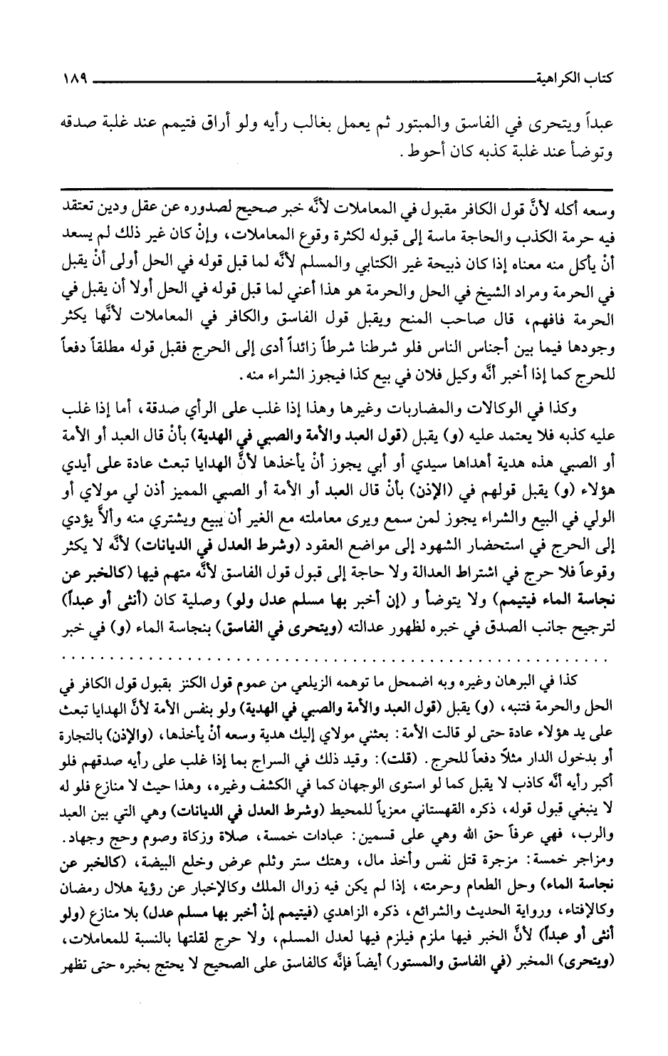 و يقبل قول العبد والأمة والصبي في الهدية بأن قال العبد أو الأمة أو الصبي هذه هدية أهداها سيدي أو أبي يجوز أن يأخذها لأن الهدايا تبعث عادة على أيدي هؤلاء و يقبل قولهم في الأذان بأن قال العبد أو الأمة أو الصبي المميز أذن لي مولاي أو الولي في البيع والشراء يجوز لمن سمع ويرى معاملته مع الغير أن يبيع ويشتري منه وإلا يؤدي إلى الحرج في استحضار الشهود إلى مواضع العقود