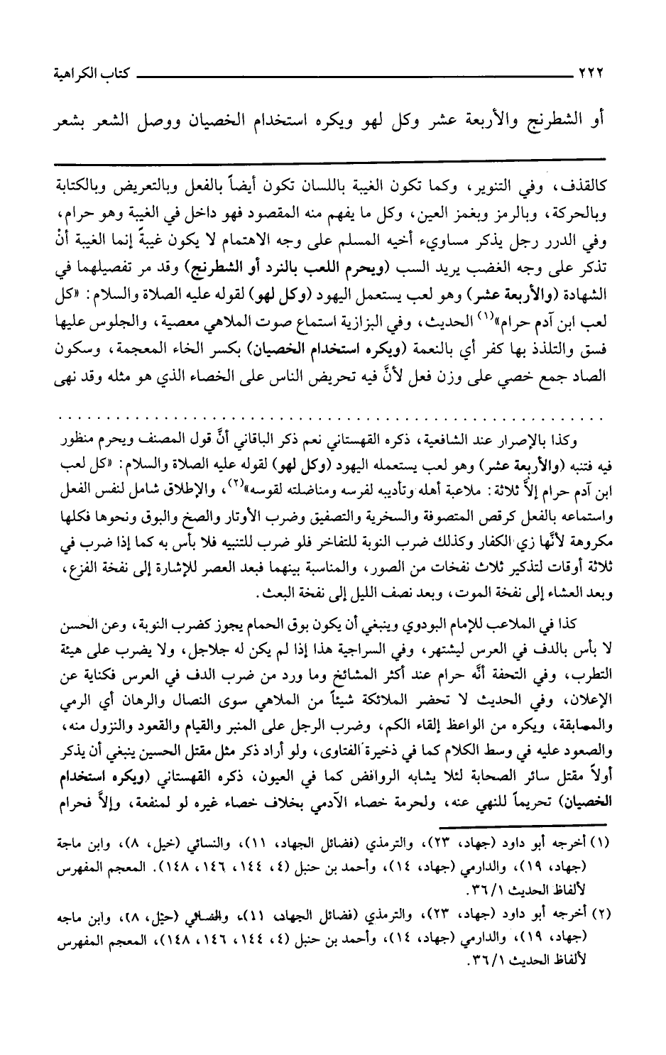 ويحرم اللعب بالنرد أو الشطرنج وقد مر تفصيلهما في الشهادة والأربعة عشر وهو لعب يستعمله اليهود وكل لهو لقوله عليه الصلاة والسلام كل لعب ابن آدم حرام الحديث