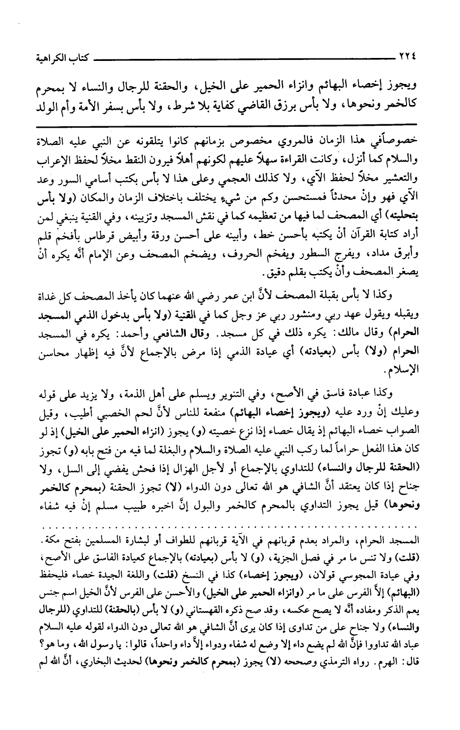و تجوز الحقنة للرجال والنساء للتداوي بالإجماع أو لأجل الهزال إذا فحش يفضي إلى السل ولا جناح إذا كان يعتقد أن الشافي هو الله تعالى دون الدواء لا تجوز الحقنة بمحرم كالخمر ونحوها قيل يجوز التداوي بالمحرم كالخمر والبول إن أخبره طبيب مسلم أن فيه شفاء